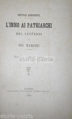 Marche: Leopardi, Mamiani, Letteratura E Filologia. Antica Edizione, Napoli 1892. Rarità