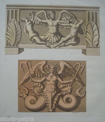 Allegorie, Mitologia, Arti Decorative, Architettura: Antica Incisione Bonatti, XIX Secolo
