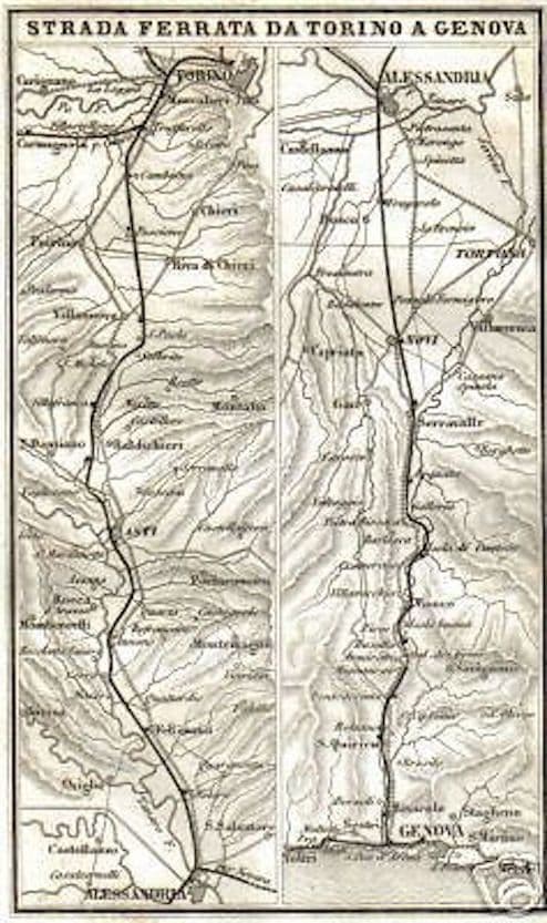 Mappa Antica Ferrovia Torino Genova, Metà '800