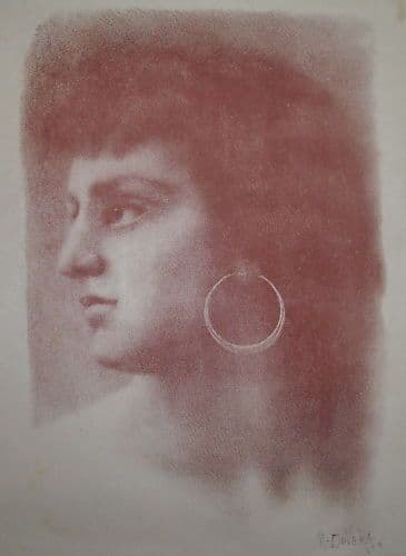 Litografia Antica M. Dovera Fine '800: Profilo Di Donna In Seppia