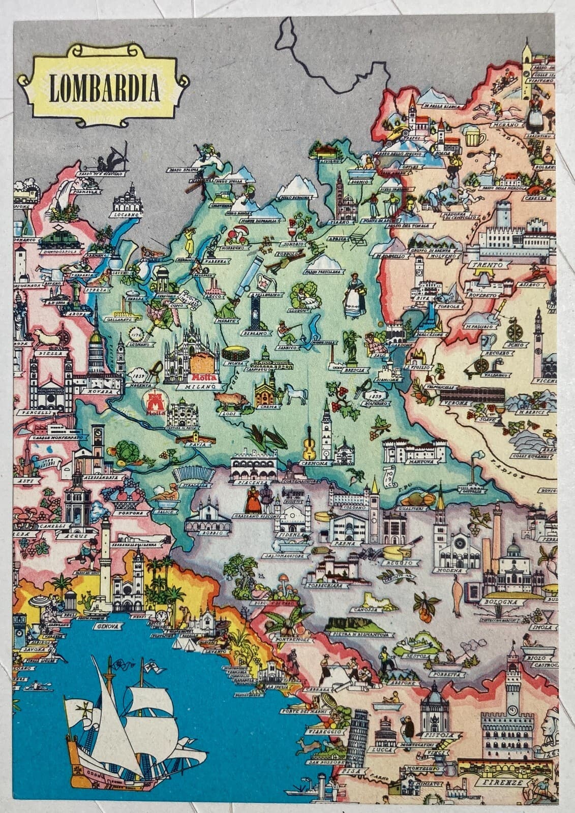 Pubblicitaria Motta Cartolina Cartografica E Folkloristica Lombardia E Dintorni