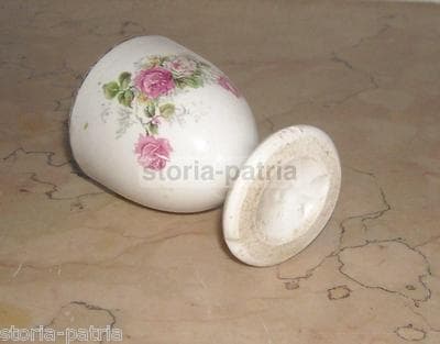 Antico Porta Uovo In Porcellana Con Decoro Floreale Policromo