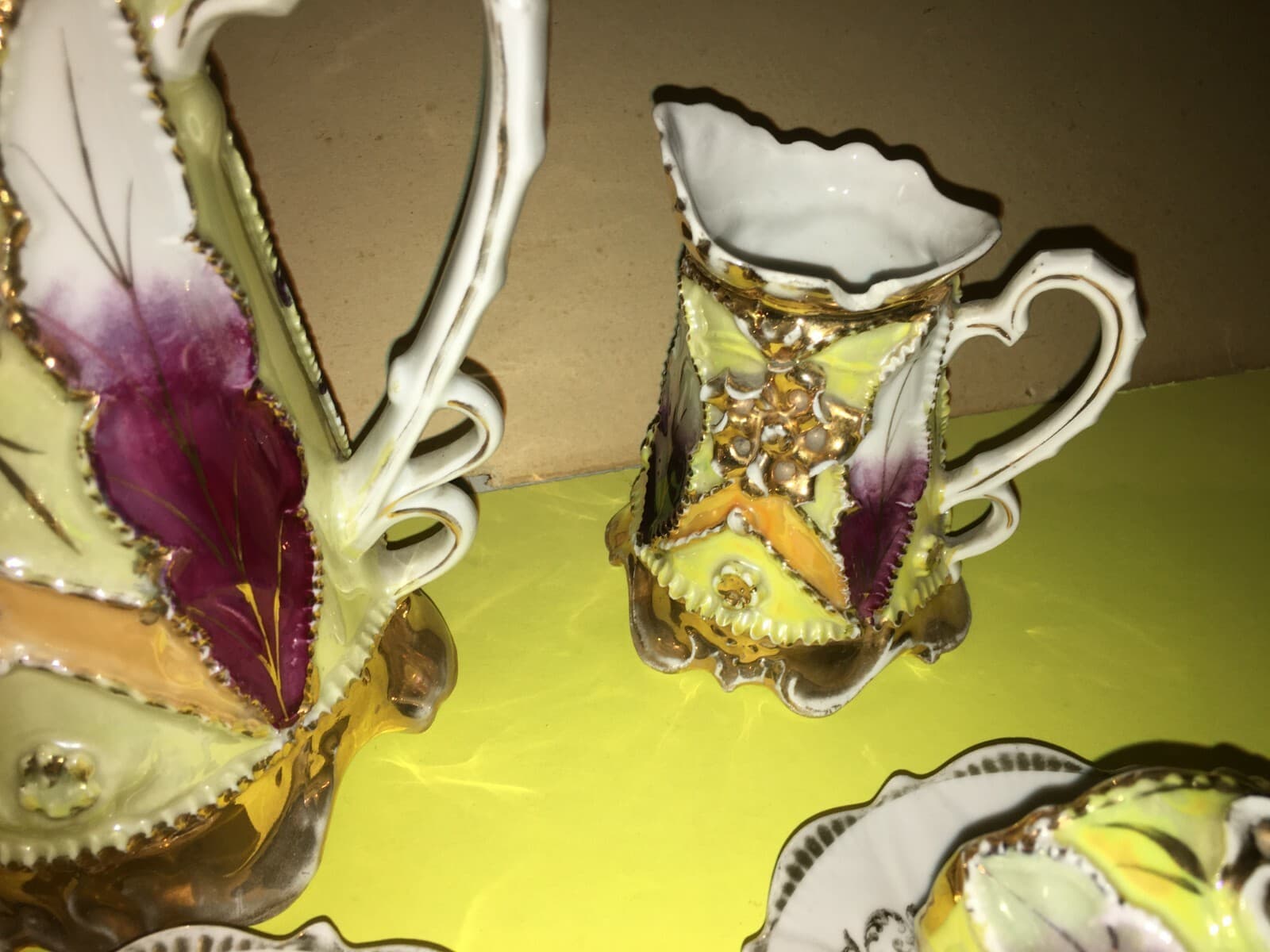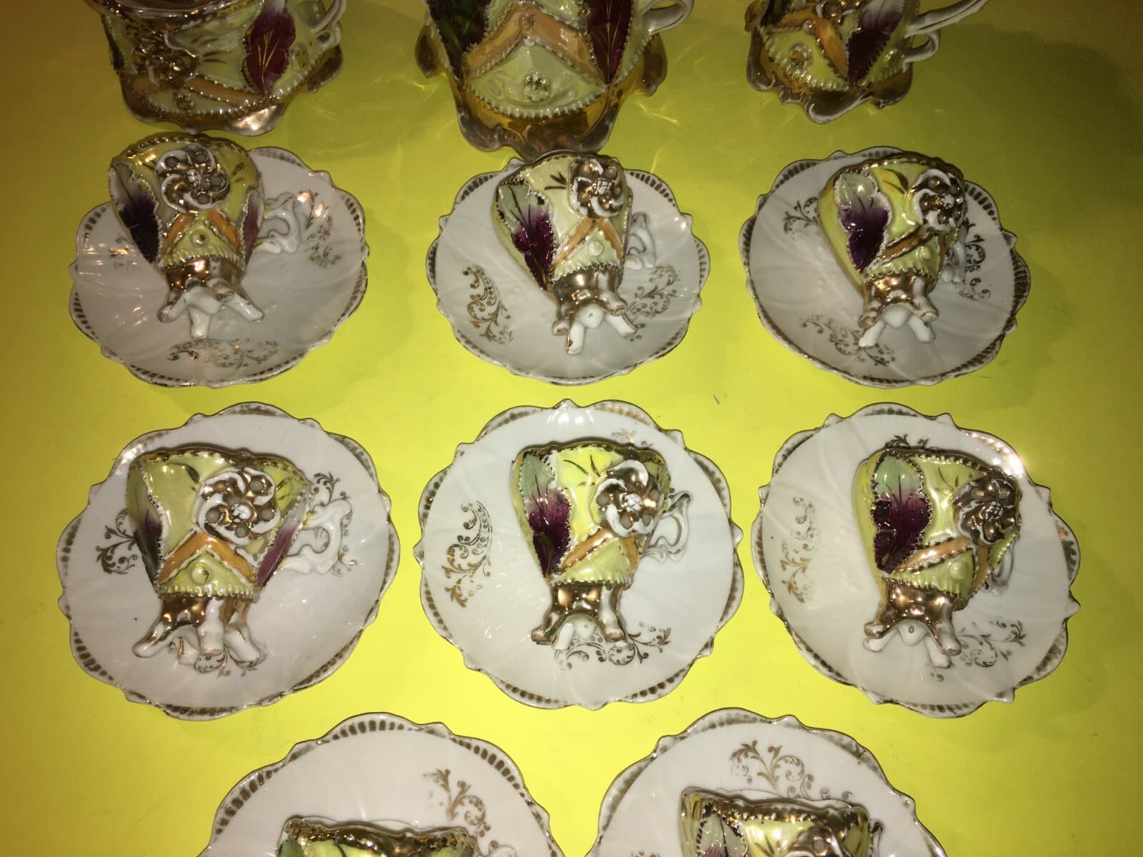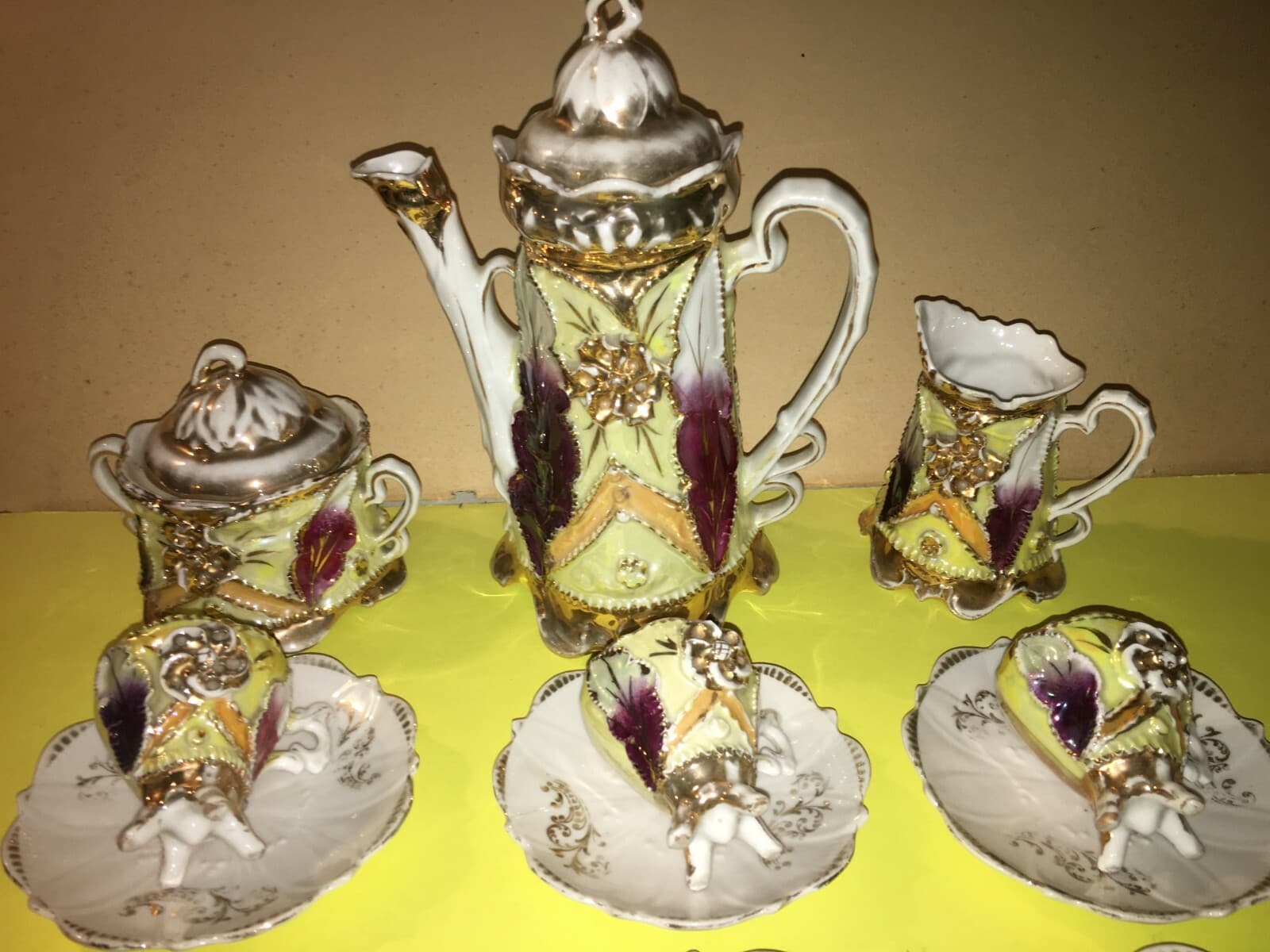 Elegante Servizio Da Caffè Con Decori Policromi E Dorati In Rilievo