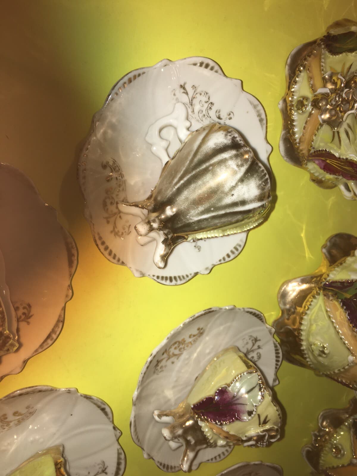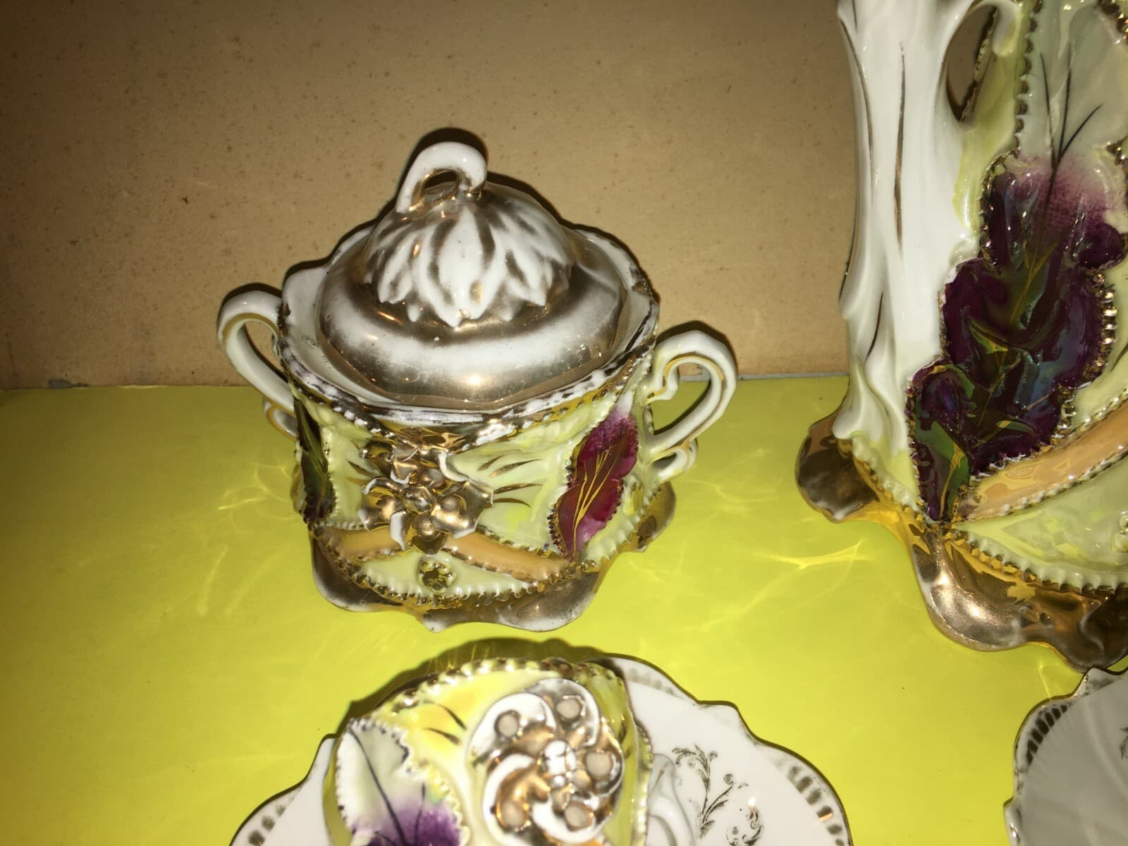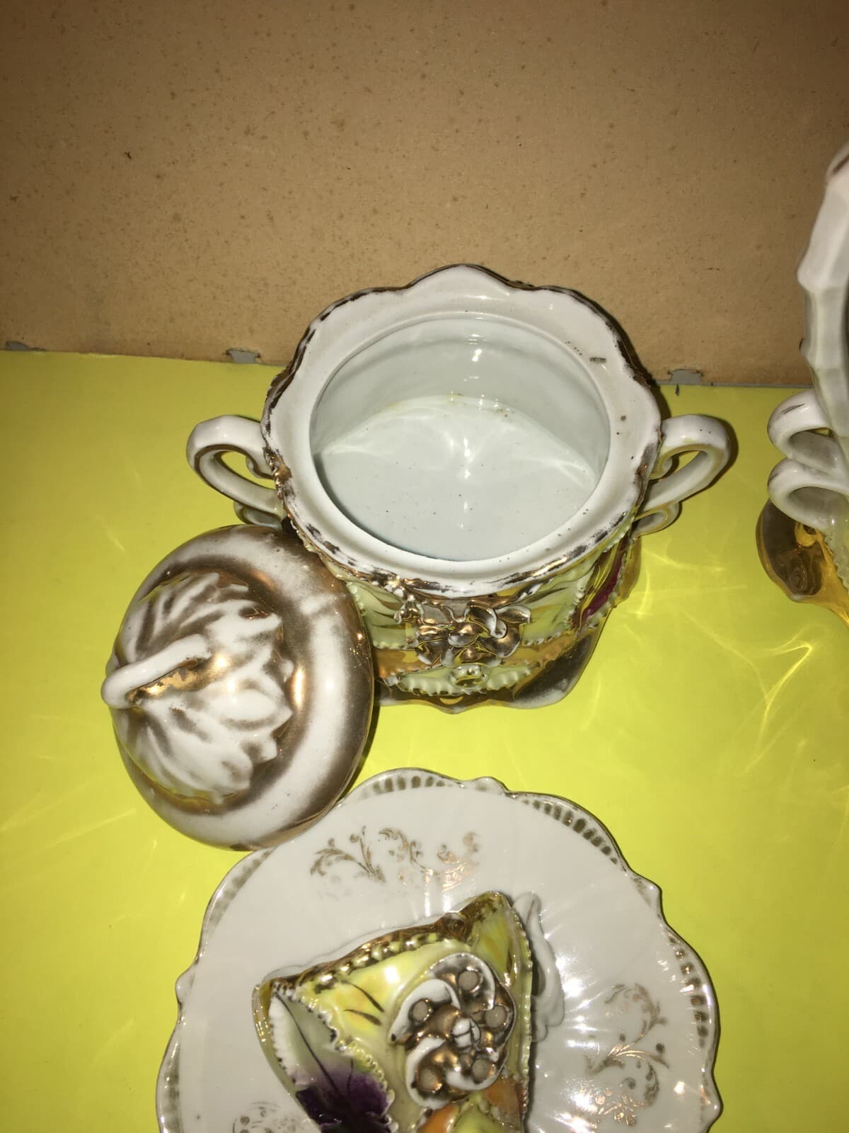 Elegante Servizio Da Caffè Con Decori Policromi E Dorati In Rilievo