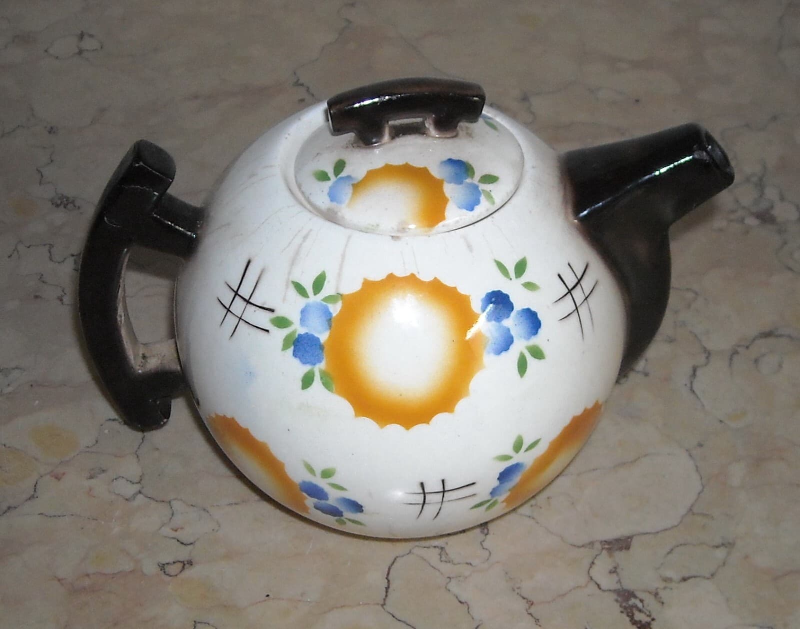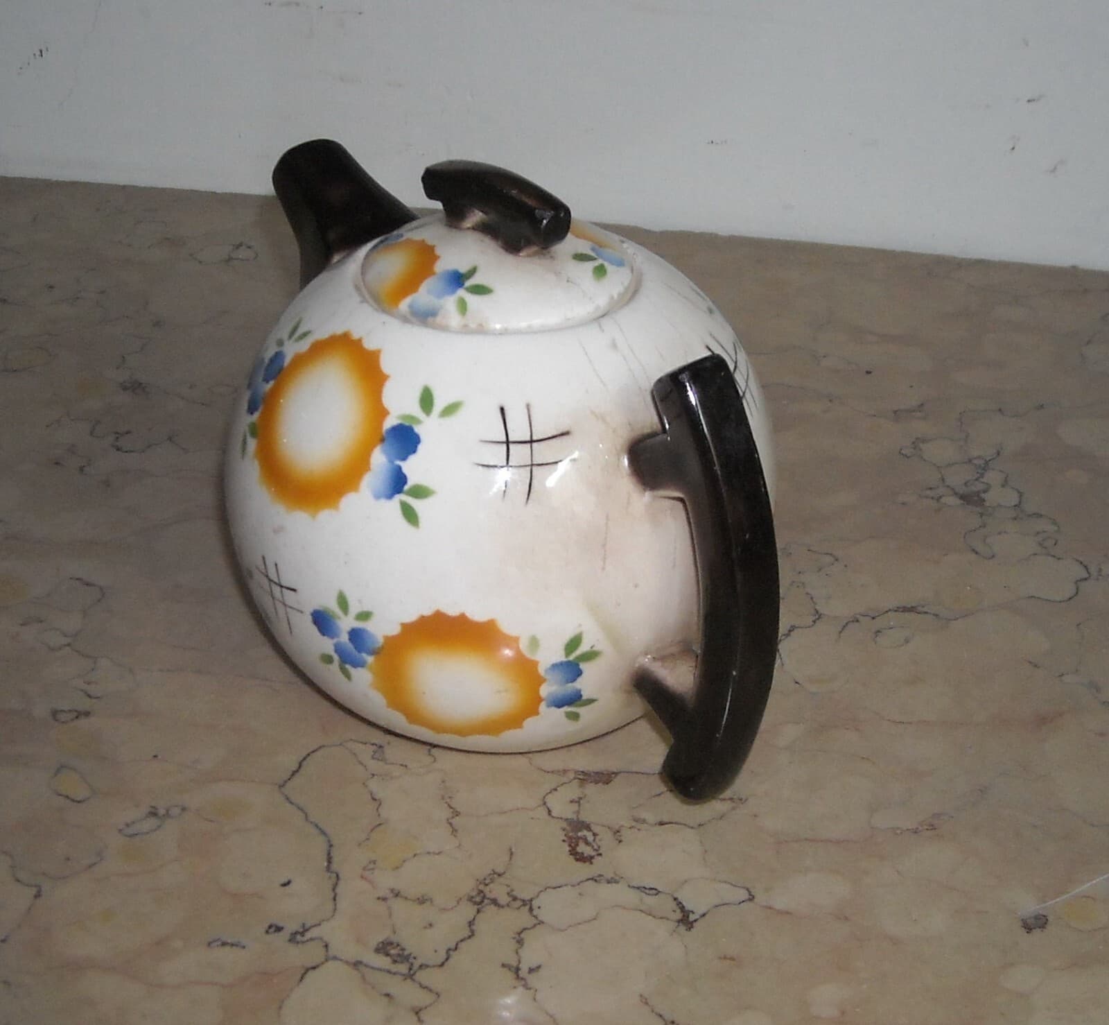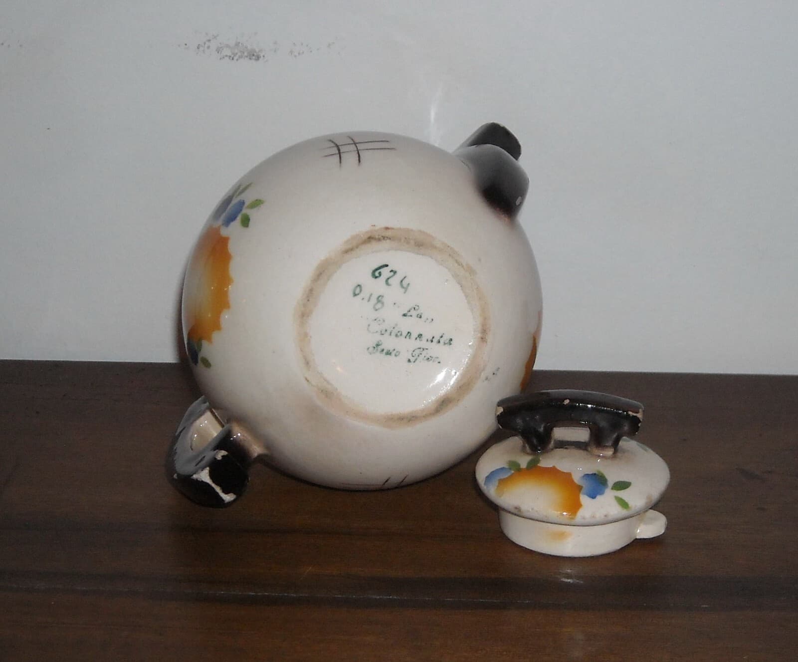 Antica Ceramica Con Decori Artistici E Mascheroni. Teiera O Caffettiera Da Collezione