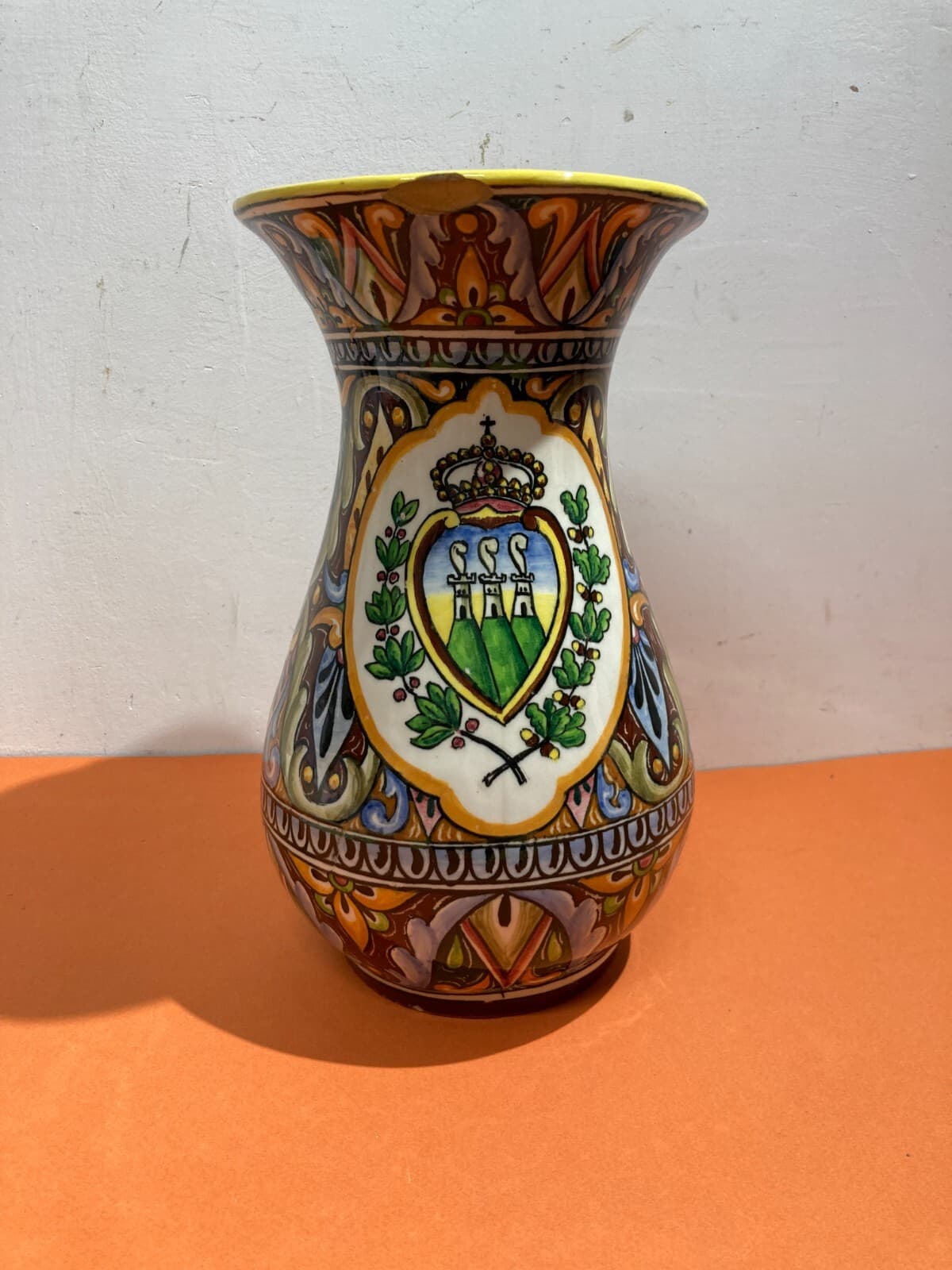 Artistico Soprammobile, Vaso Decorato Con Stemma Della Repubblica Di San Marino