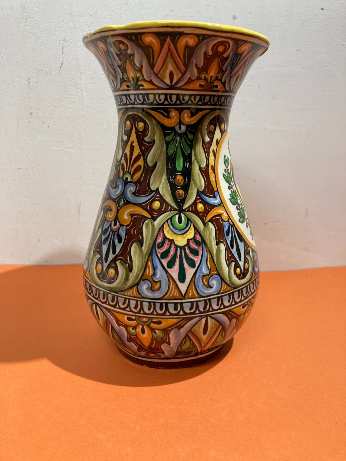 Artistico Vaso Con Decoro Policromo Floreale MTC