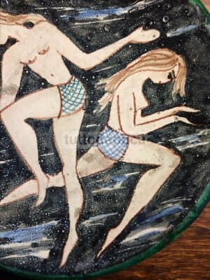 Arte Ceramica: Scena Con Bagnanti E Pesci, Mare, Vietri, Avallone, d'Epoca