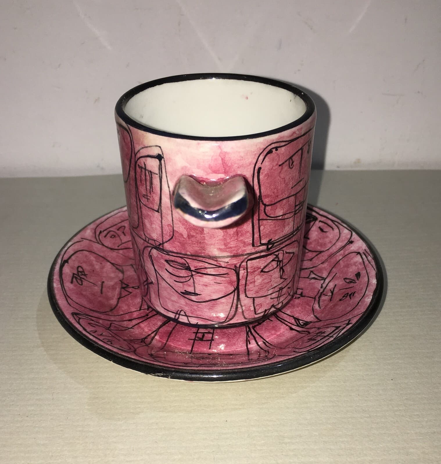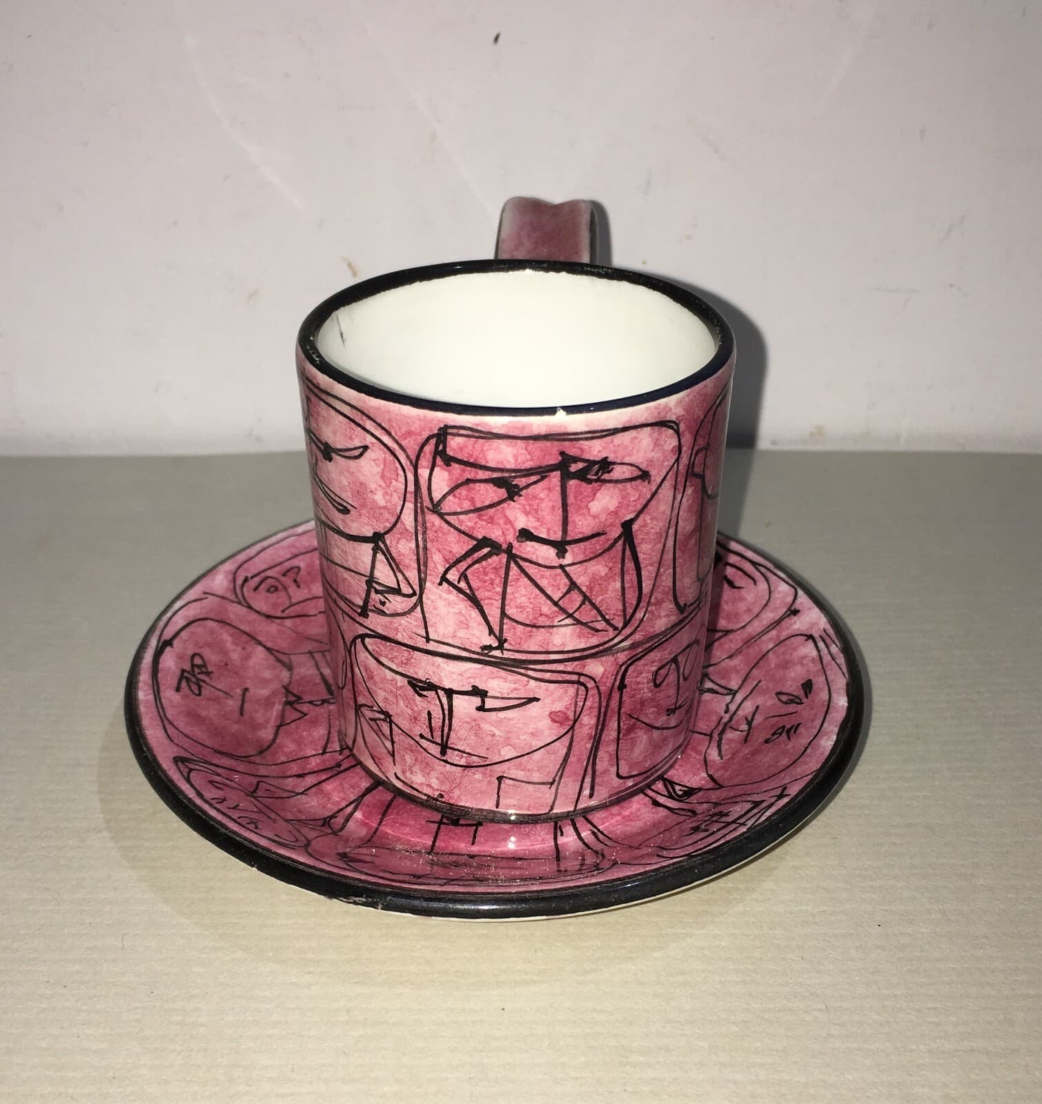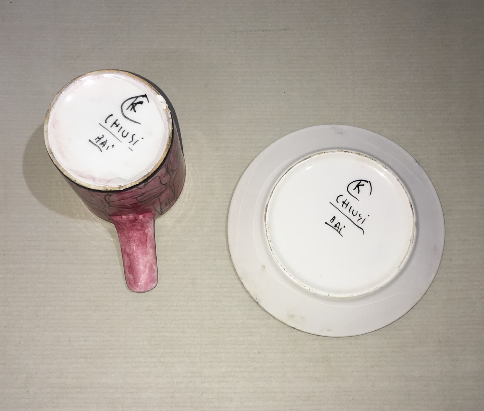 Arte Ceramica: Tazzina Con Piattino, Decori Umoristici, Chiusi, Bai, Metà '900