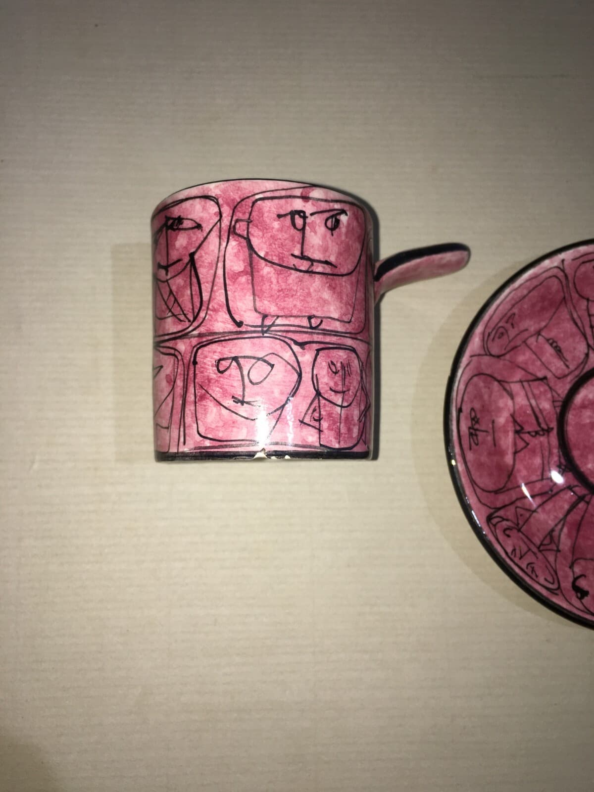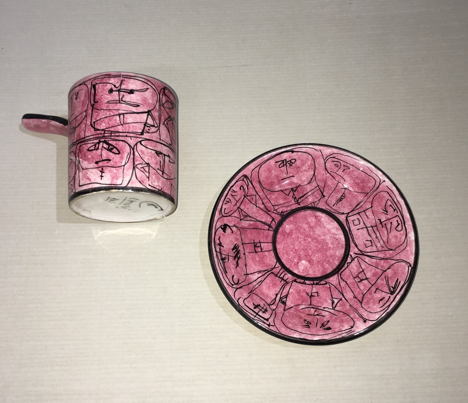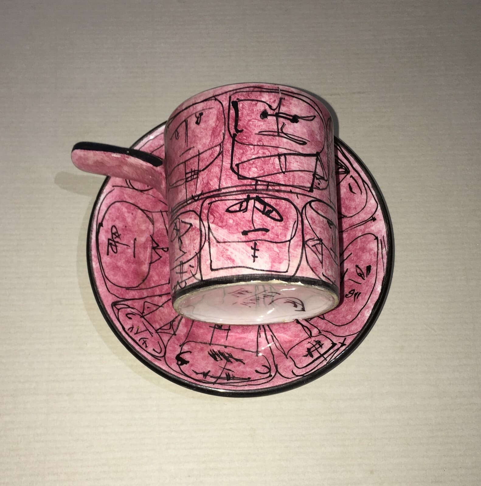 Arte Ceramica: Tazzina Con Piattino, Decori Umoristici, Chiusi, Bai, Metà '900