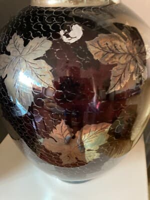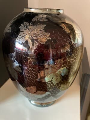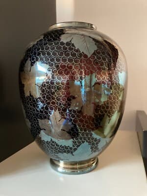 Vaso In Vetro Laminato Argentato Con Decori Vegetali
