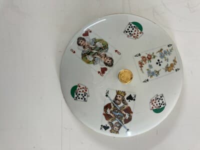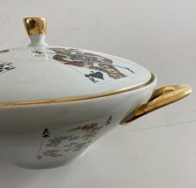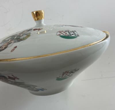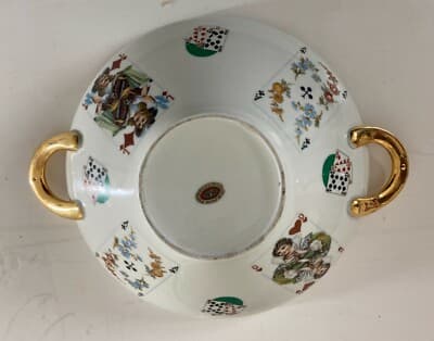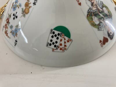Giochi Di Carte. Inusuale Ceramica Da Tavolo. Zuppiera Decorata Policroma. Poker.