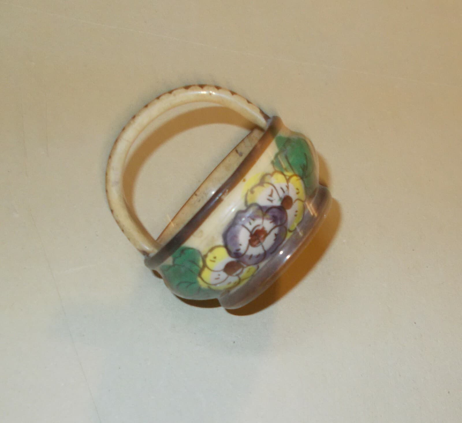 Ceramica d'Epoca Con Decoro Floreale Policromo Siglata AC