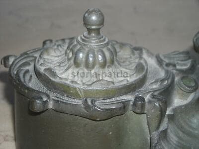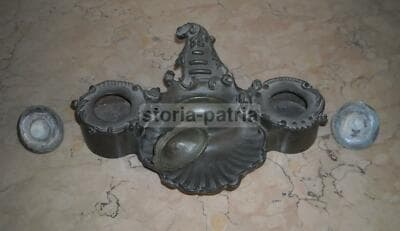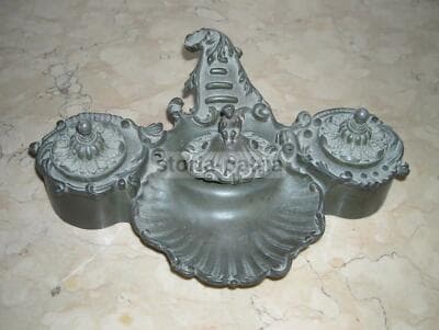 Calamaio Antico In Bronzo Con Scultura Di Scimmia