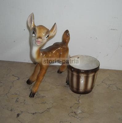 Scultura In Ceramica: Cerbiatto Con Cesto. Soprammobile Decorativo