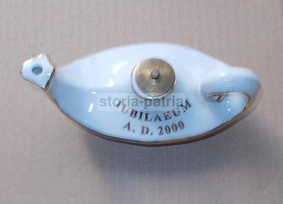 Soprammobile In Porcellana: Lucerna Commemorativa Giubileo 2000 Con Profili Dorati