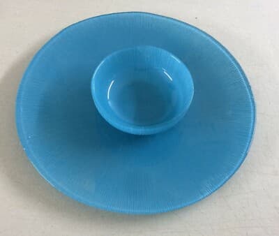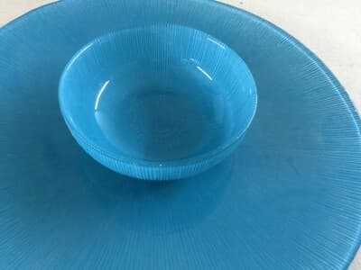 Modernariato: Vassoio E Ciotola In Vetro Decorato A Rilievo