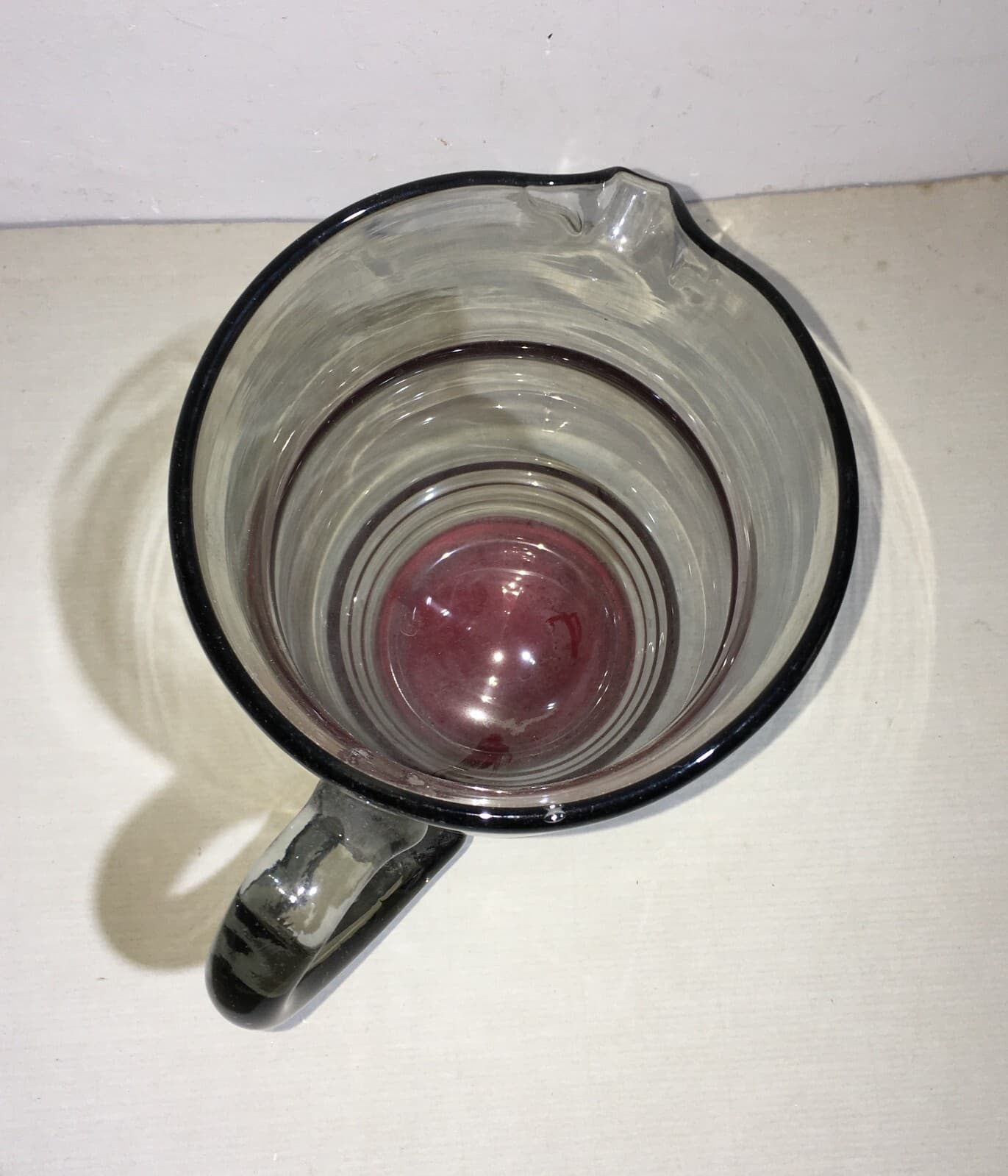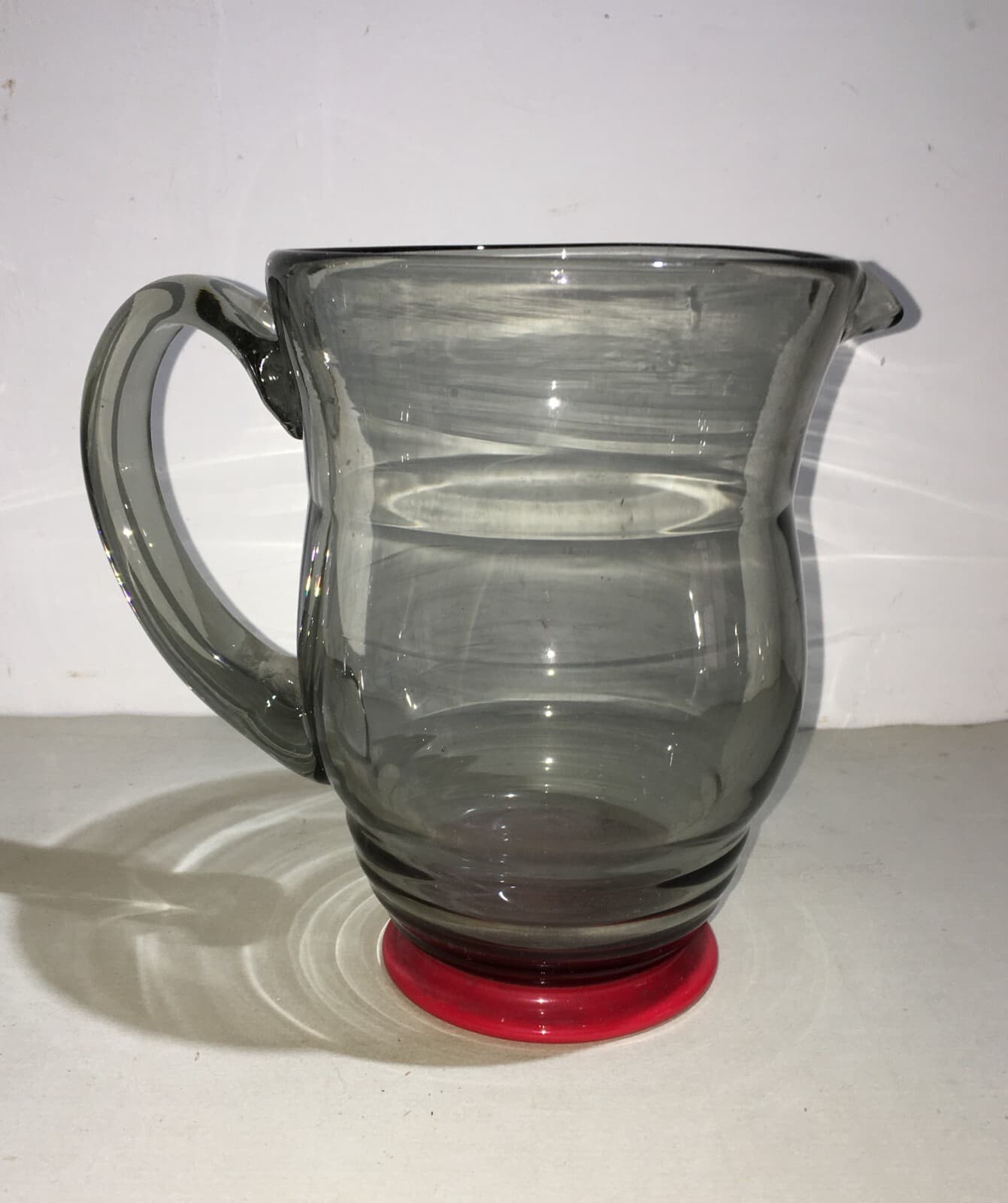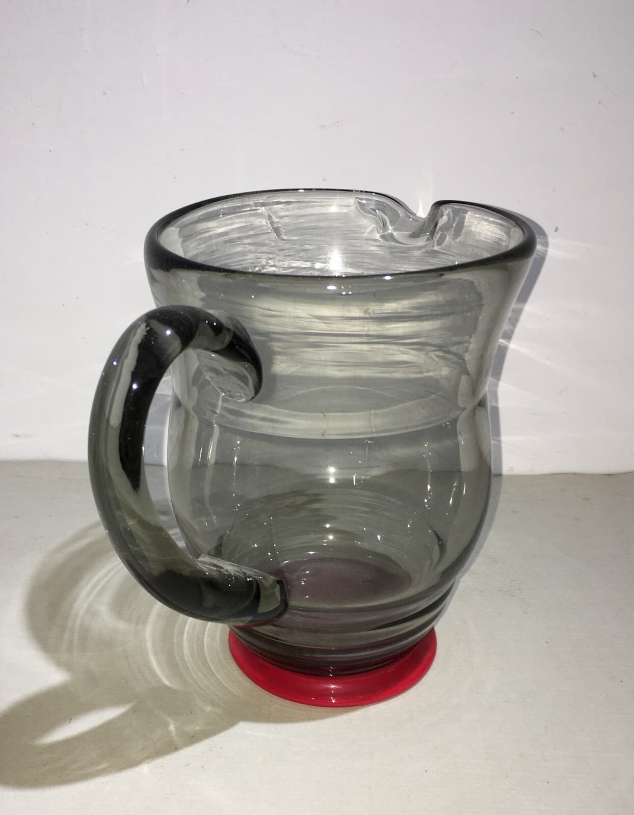 Modernariato: Caraffa Decorativa In Vetro Fumè E Base Rossa