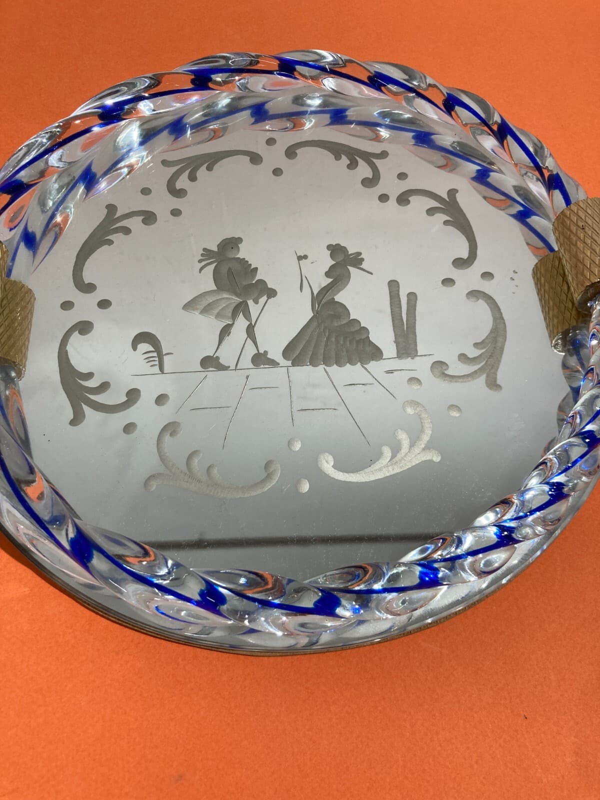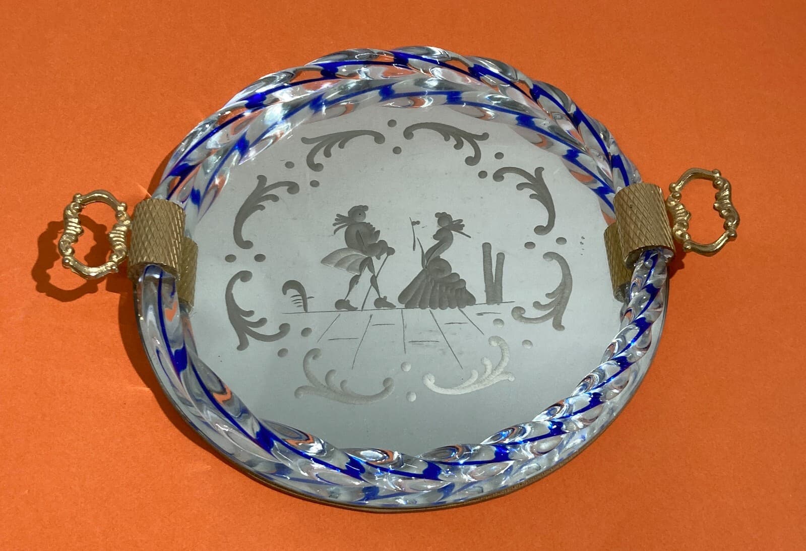 Modernariato: Vassoio Veneziano Inciso Con Scena Galante