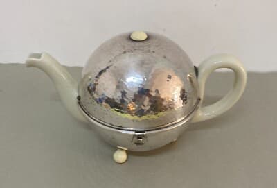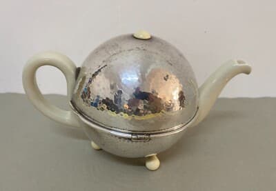 Teiera Decorativa In Stile Bauhaus Con Rivestimento In Metallo Martellato