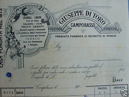 Carta Intestata Giuseppe Di Toro, Campobasso, Primi '900, Liquori