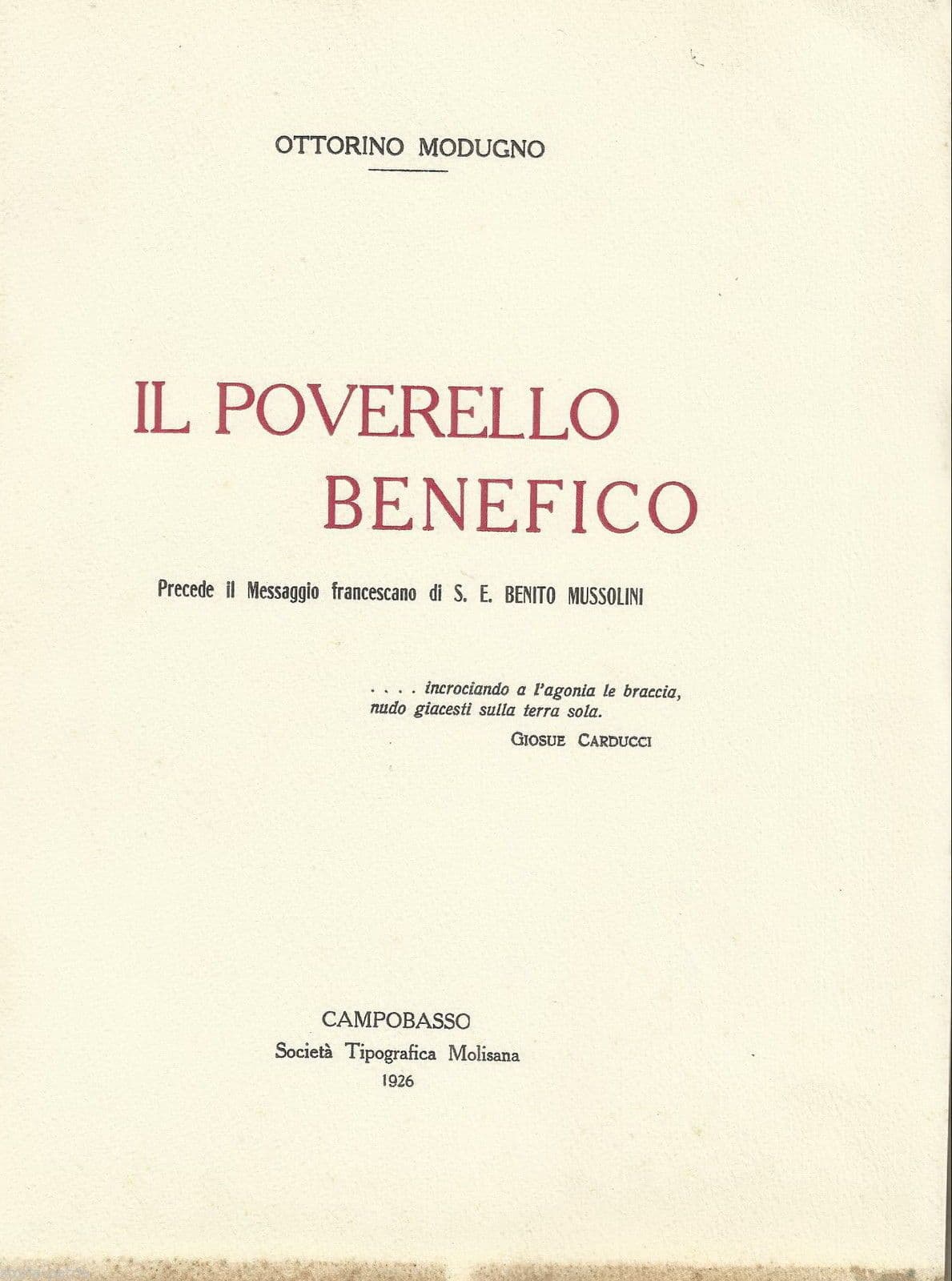San Francesco d'Assisi, Il Poverello Benefico, Modugno, 1926
