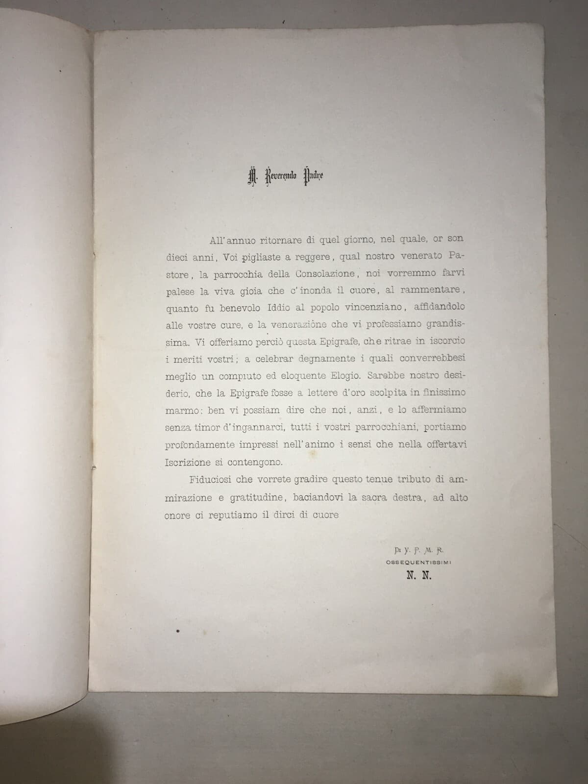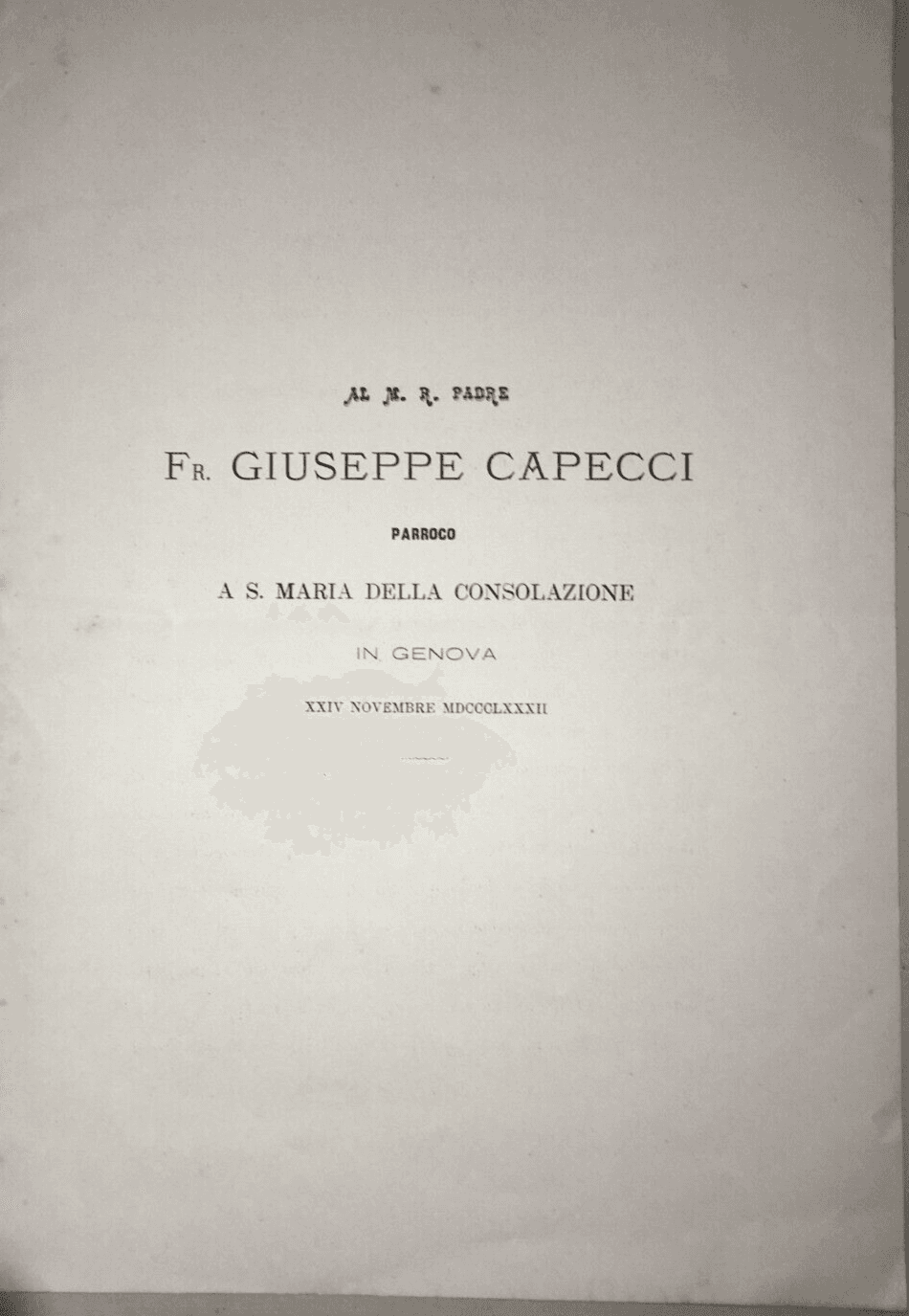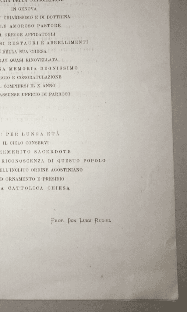 Genova S. Maria Della Consolazione Parroco Capecci Rudini Omaggio Epigrafico