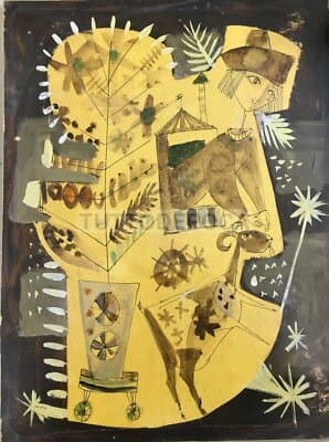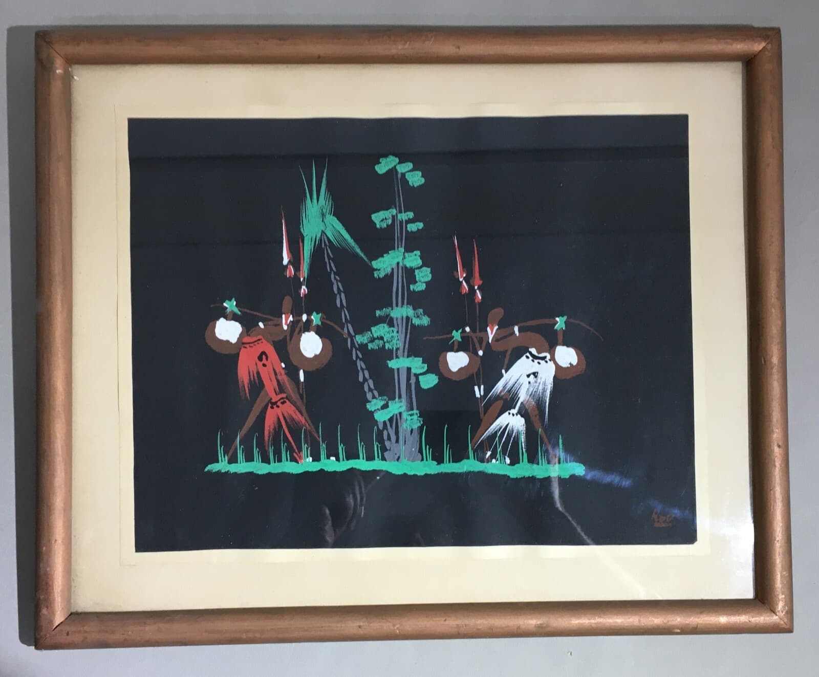 Africa: Arte Indigena, Dipinto Su Carta Firmato Kou, XX Secolo