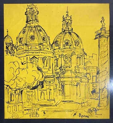 Ortiz, Veduta Di Roma. Disegno A China