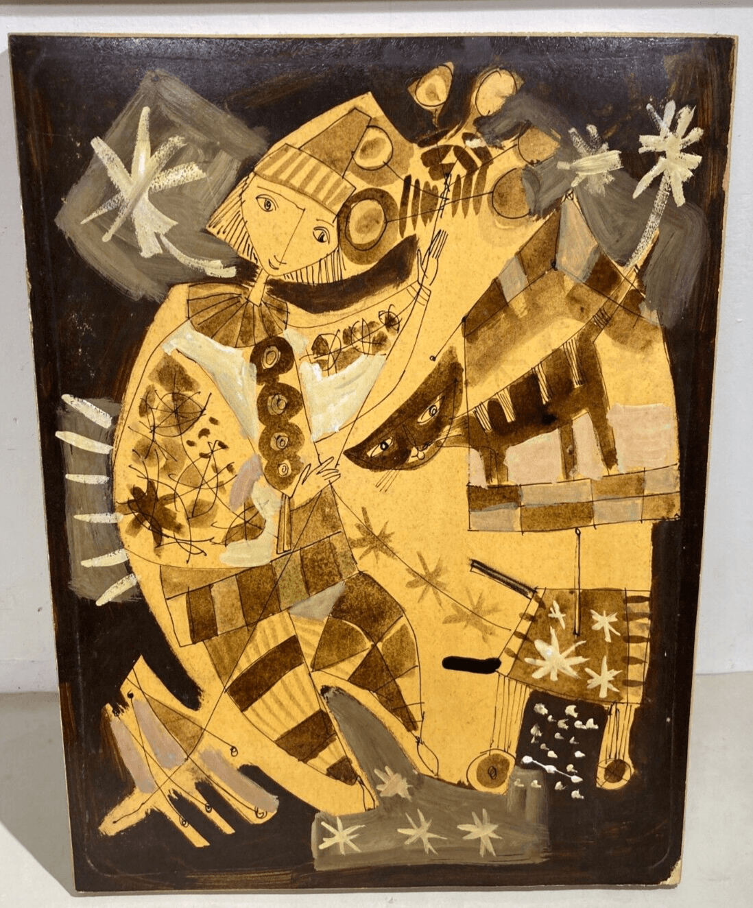 Scena Artistica Con Gatto E Figura Con Palloncini, Arlecchino E Maschere, Anni '60
