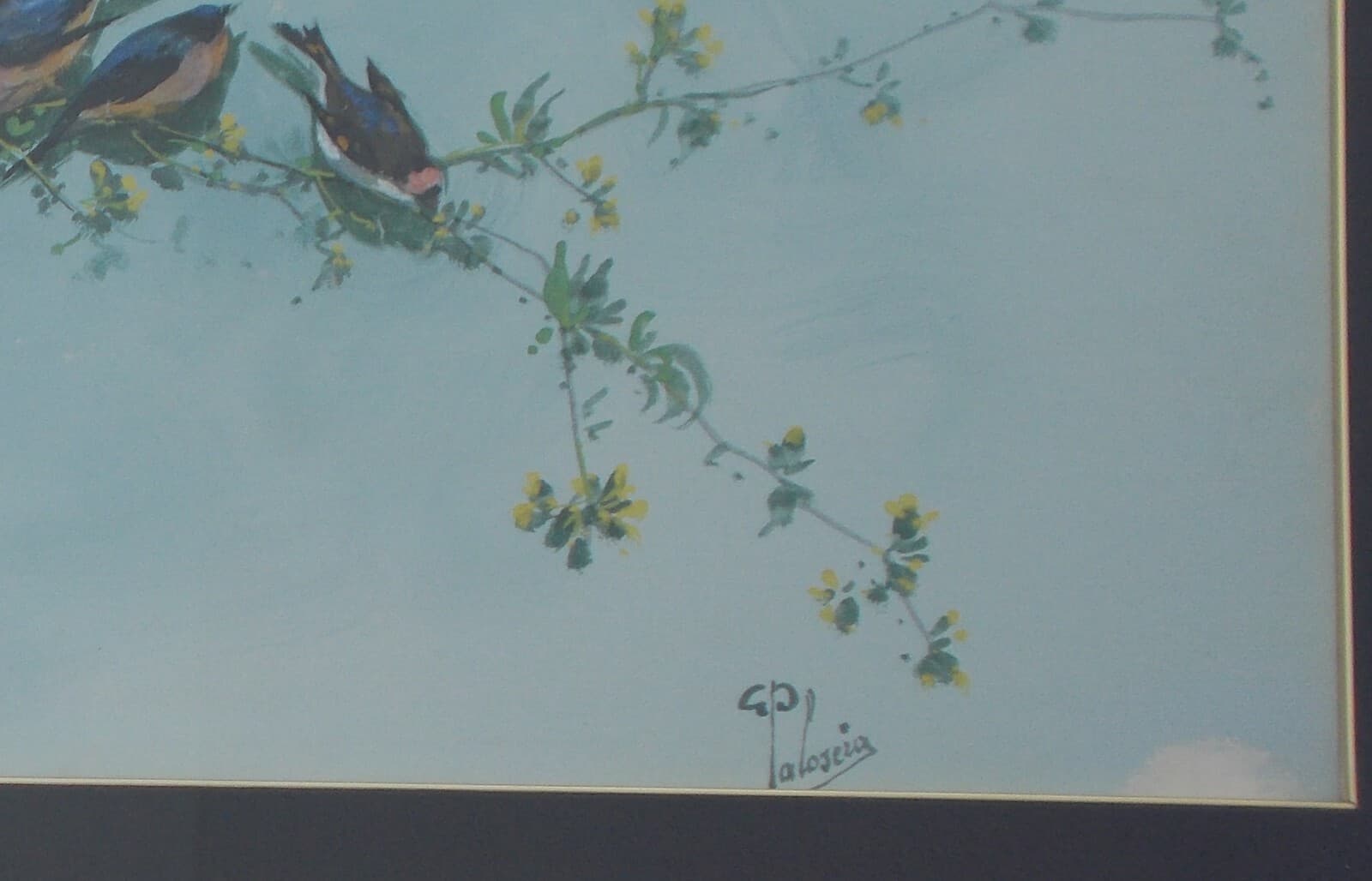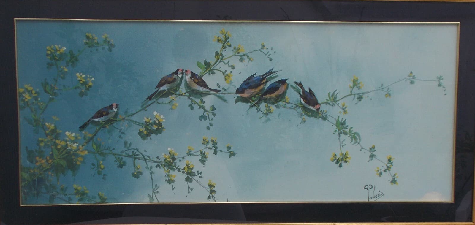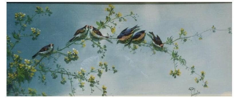 Gaetano Paloscia, Tralci Floreali Con Uccellini, Dipinto A Tempera