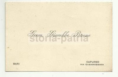 Biglietto Da Visita d'Epoca Nino Papa D'Armiento Bari, Puglia