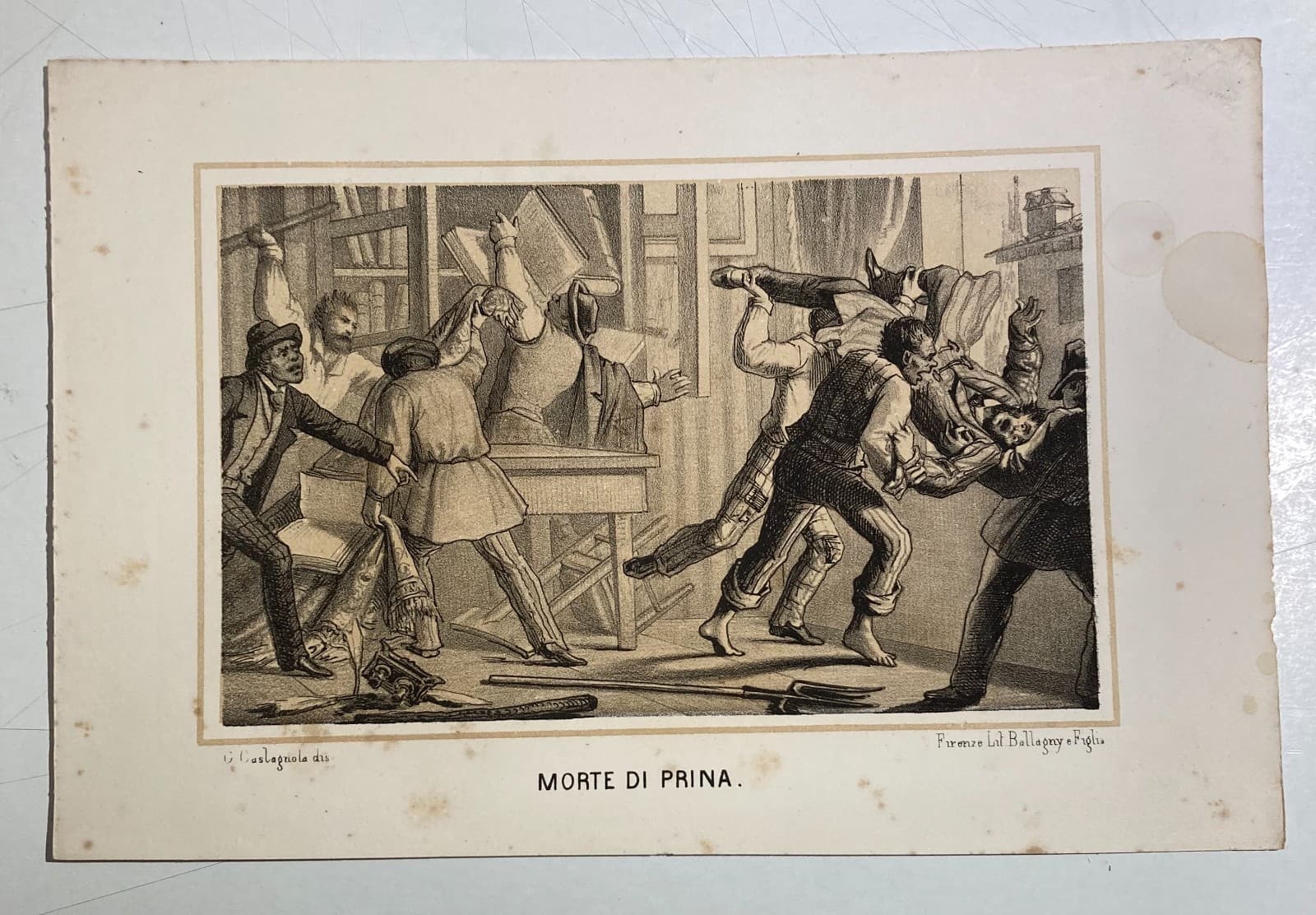 Risorgimento Italiano: Morte Di Prina. Litografia Di G. Castagnola, Ballagny, Metà XIX Secolo