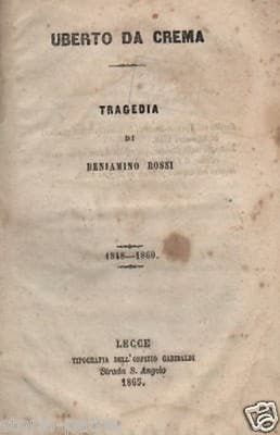 Puglia, Salento: Beniamino Rossi, "Uberto Da Crema", Dramma Risorgimentale (Lecce, 1865)