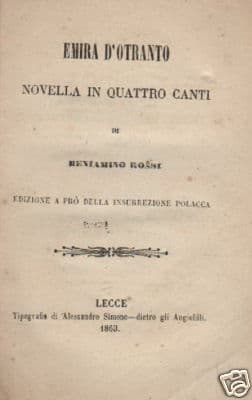 Beniamino Rossi, Emira D’Otranto (Lecce, 1863) Edizione Rara Pro Insurrezione Polacca