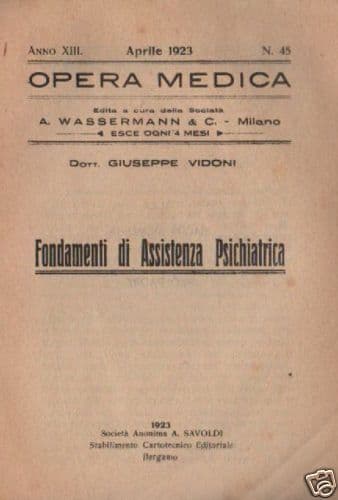 Fondamenti Di Assistenza Psichiatrica Di Giuseppe Vidoni, 1923