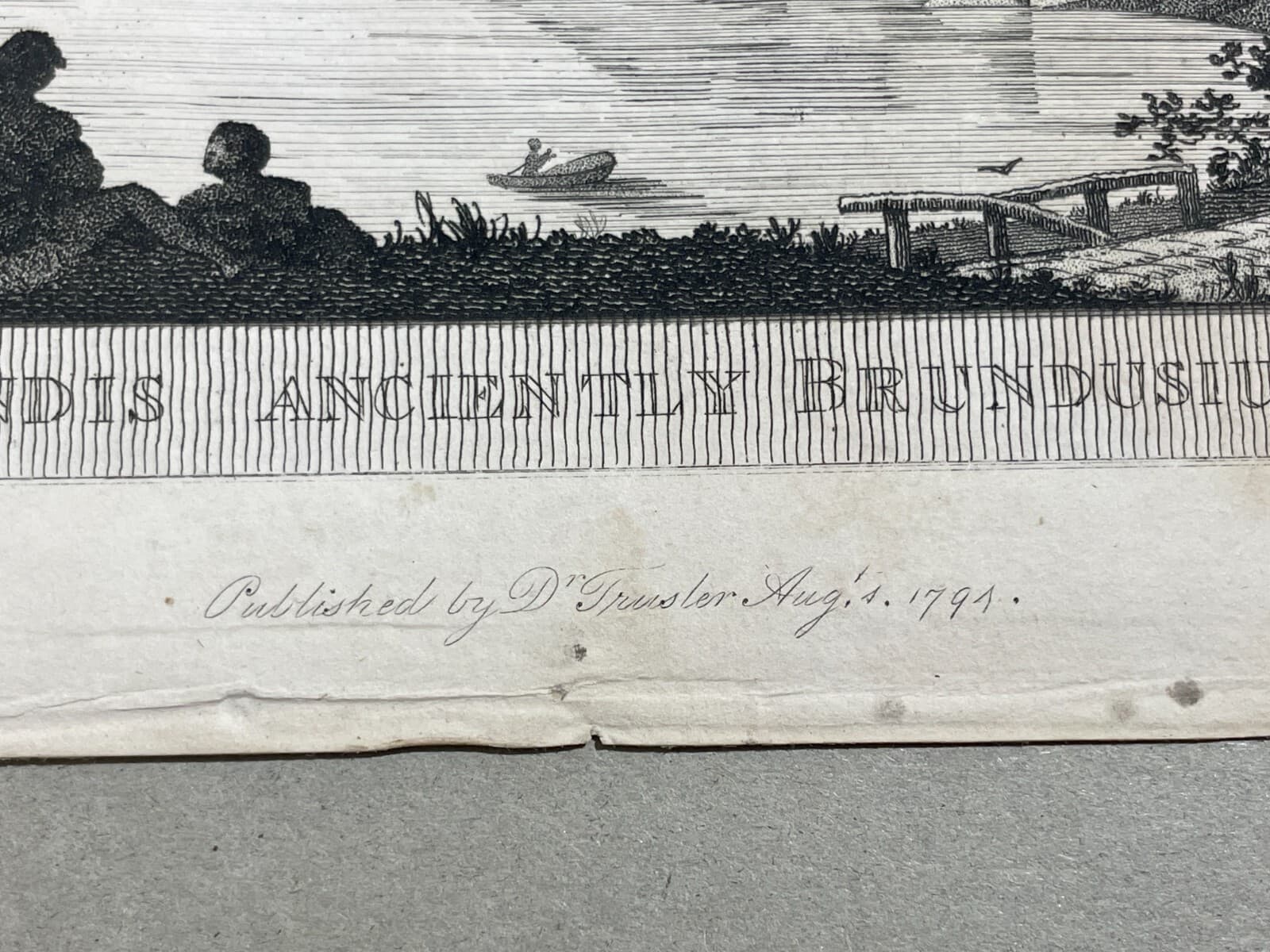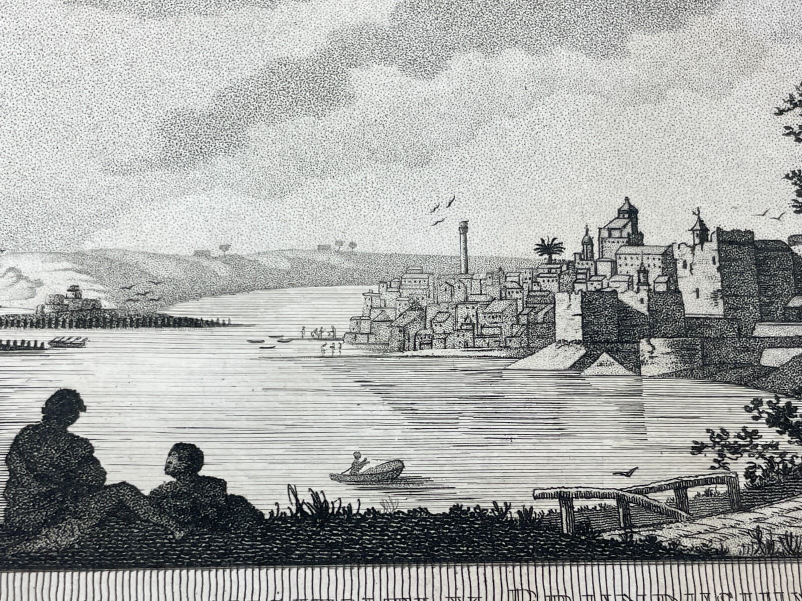 Puglia, Salento, Brindisi. Antica Veduta Litografica: Castello, Barche, Panoramica