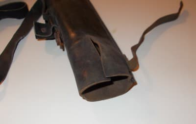 Antico Fodero In Cuoio Ebanizzato Con Tracolla Per Cavalletti O Ottica