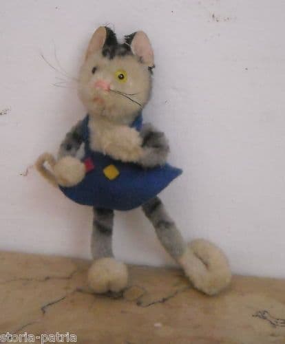 Peluche Gattina Vestita d'Epoca, Anni 1900 1950, In Pannolenci, 10 Cm