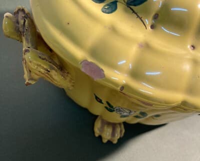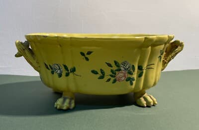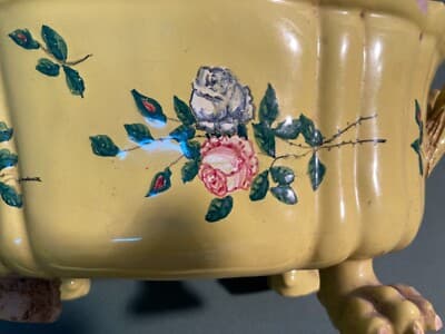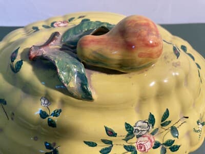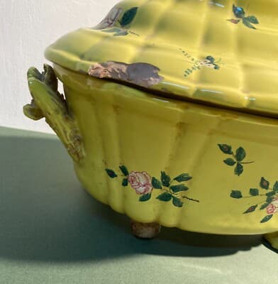 Antica Zuppiera In Ceramica Con Decoro Floreale, Pomolo A Pera E Piedi Leonini