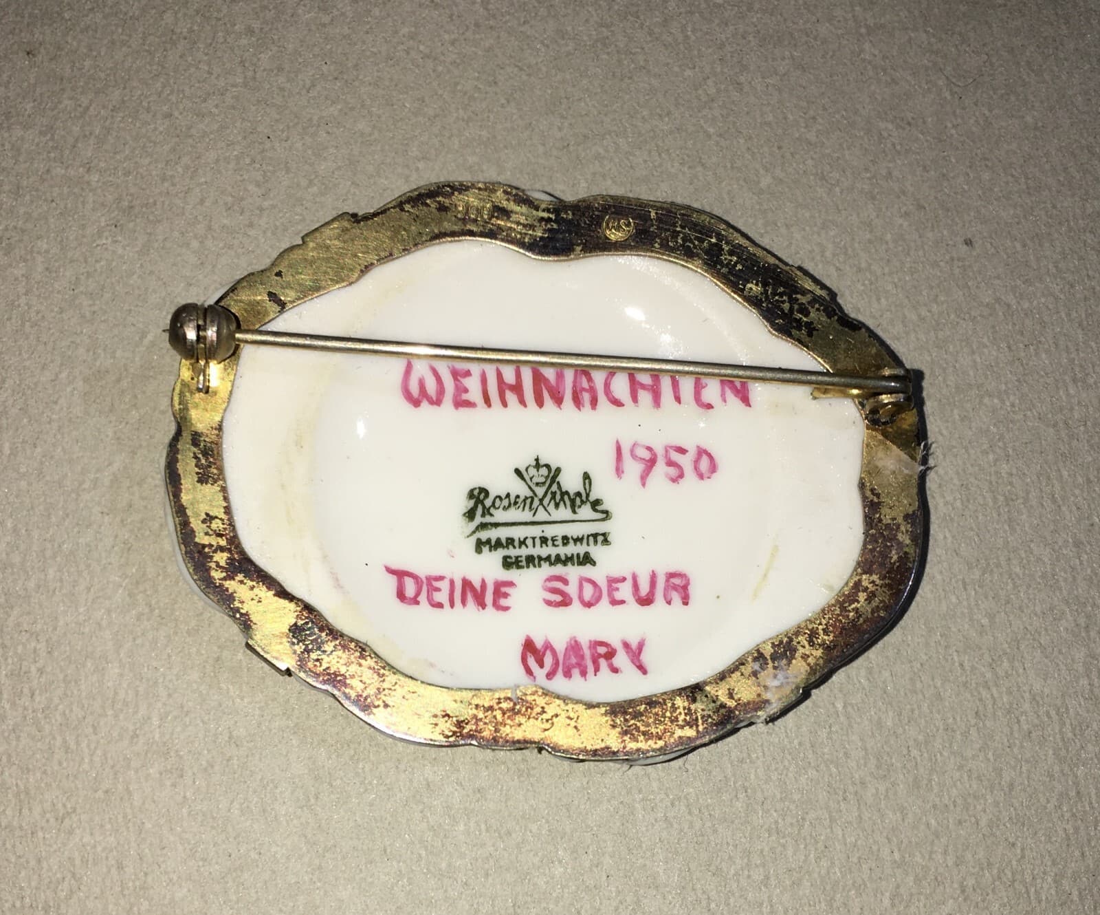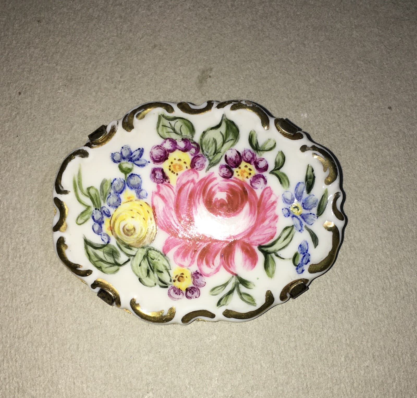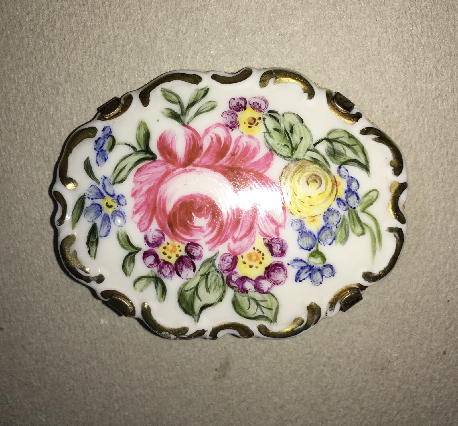 Spilla In Porcellana Rosenthal Con Decoro Floreale Policromo