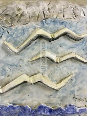 Arte Del '900: Marina Con Gabbiani. Artistica Ceramica Policroma, Artista Fiori
