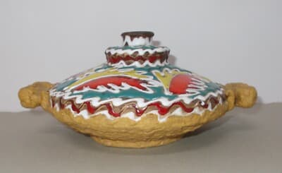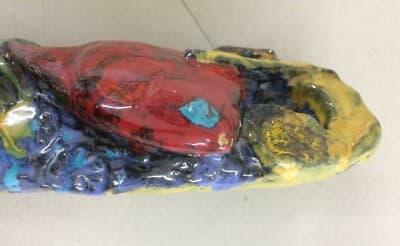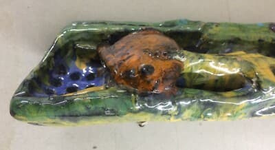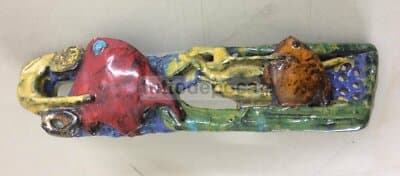 Artistica Ceramica Policroma Con Motivi Decorativi In Rilievo A Forma Di Pesci
