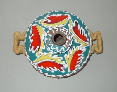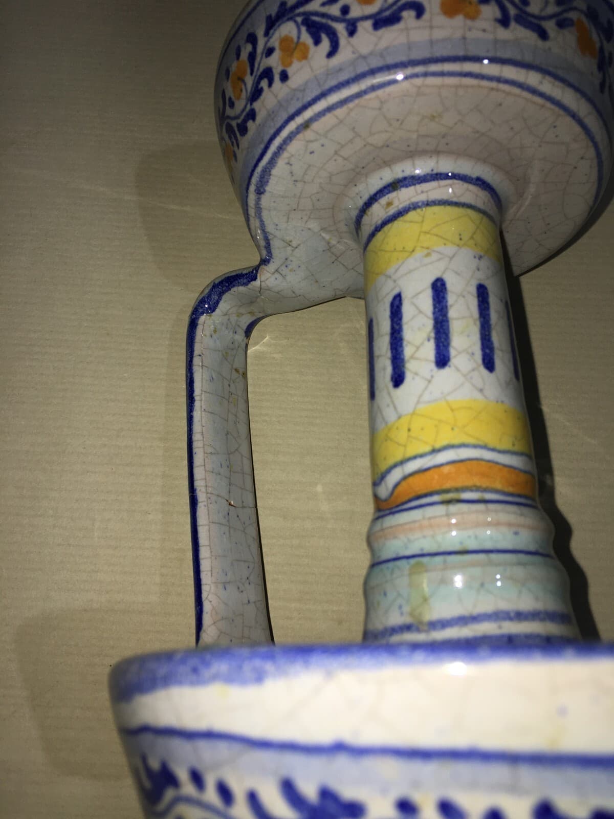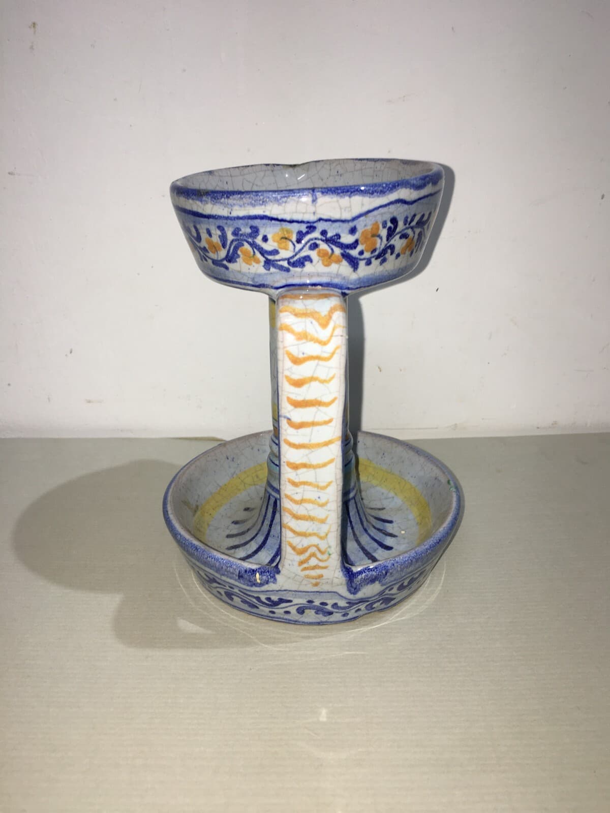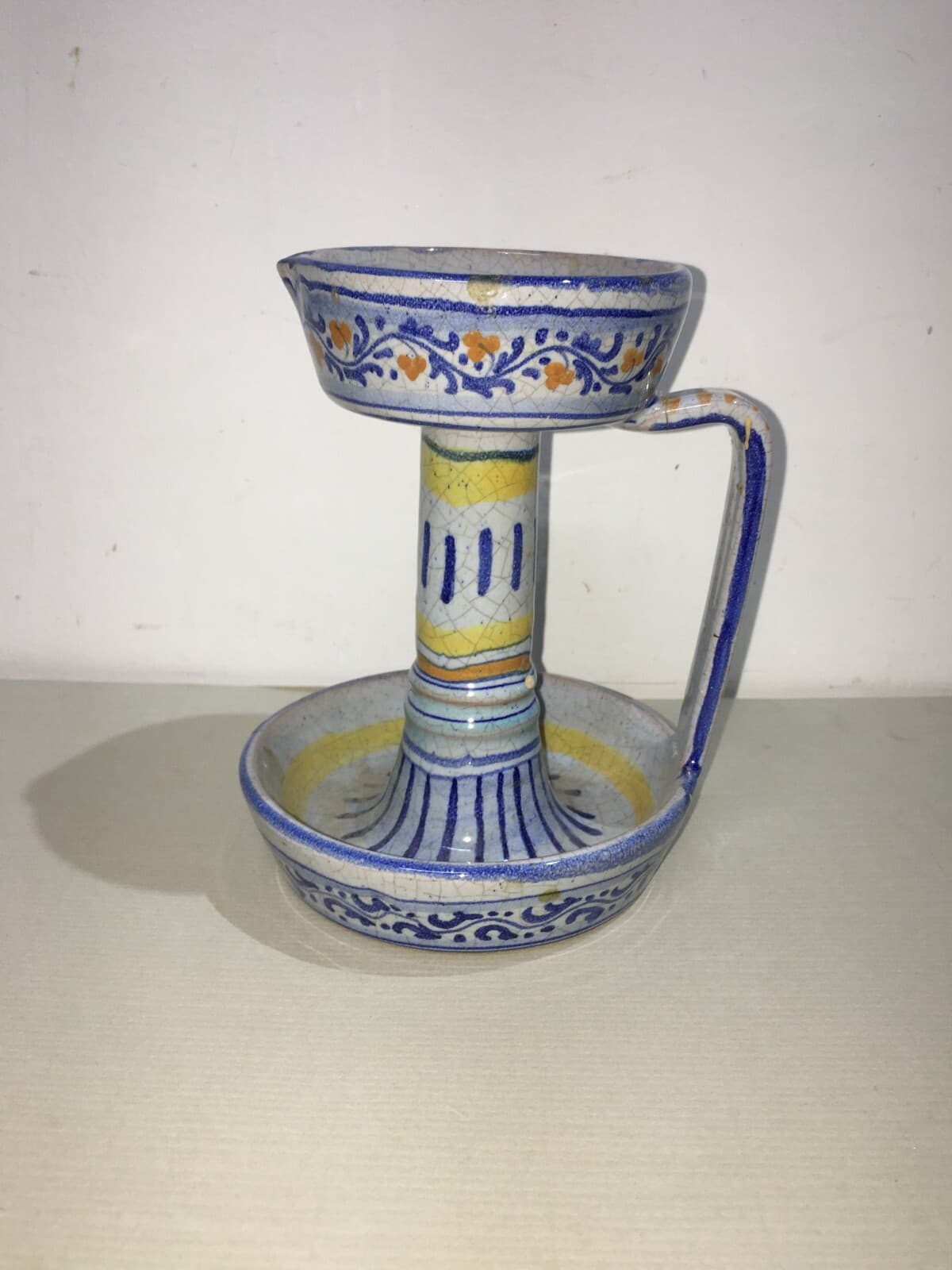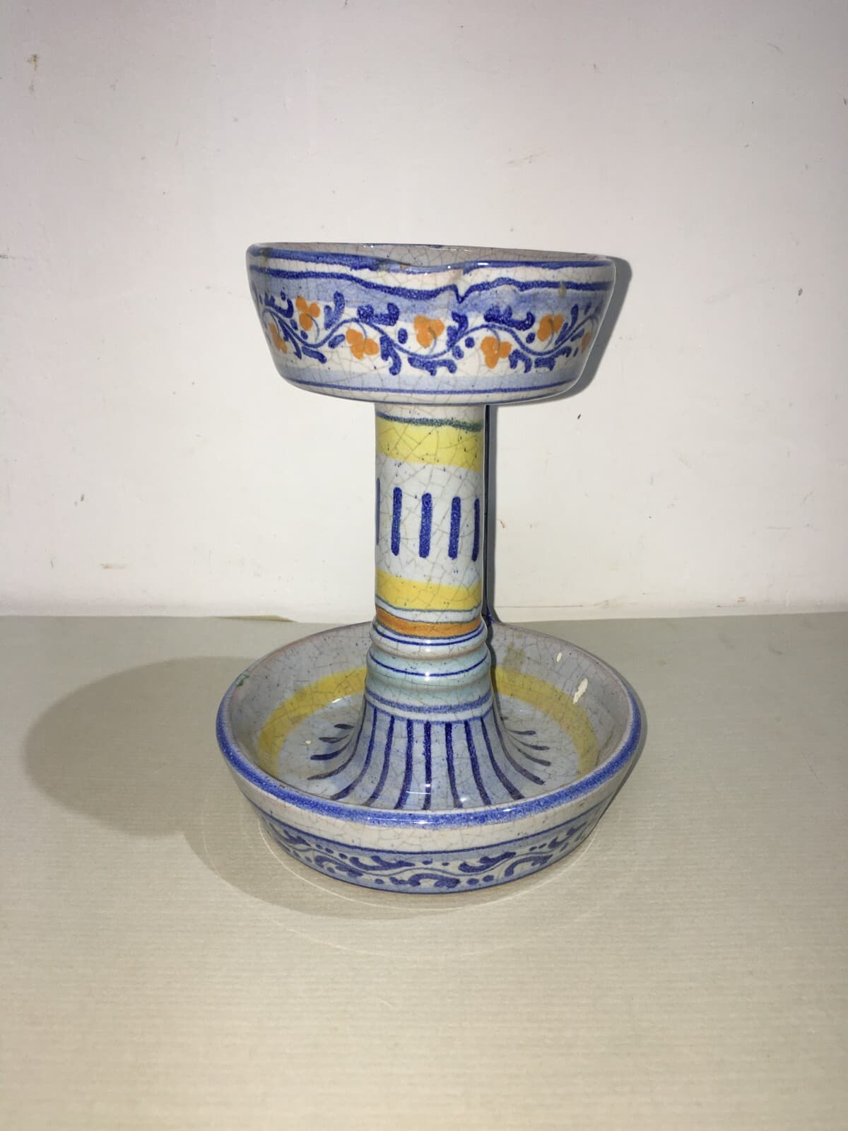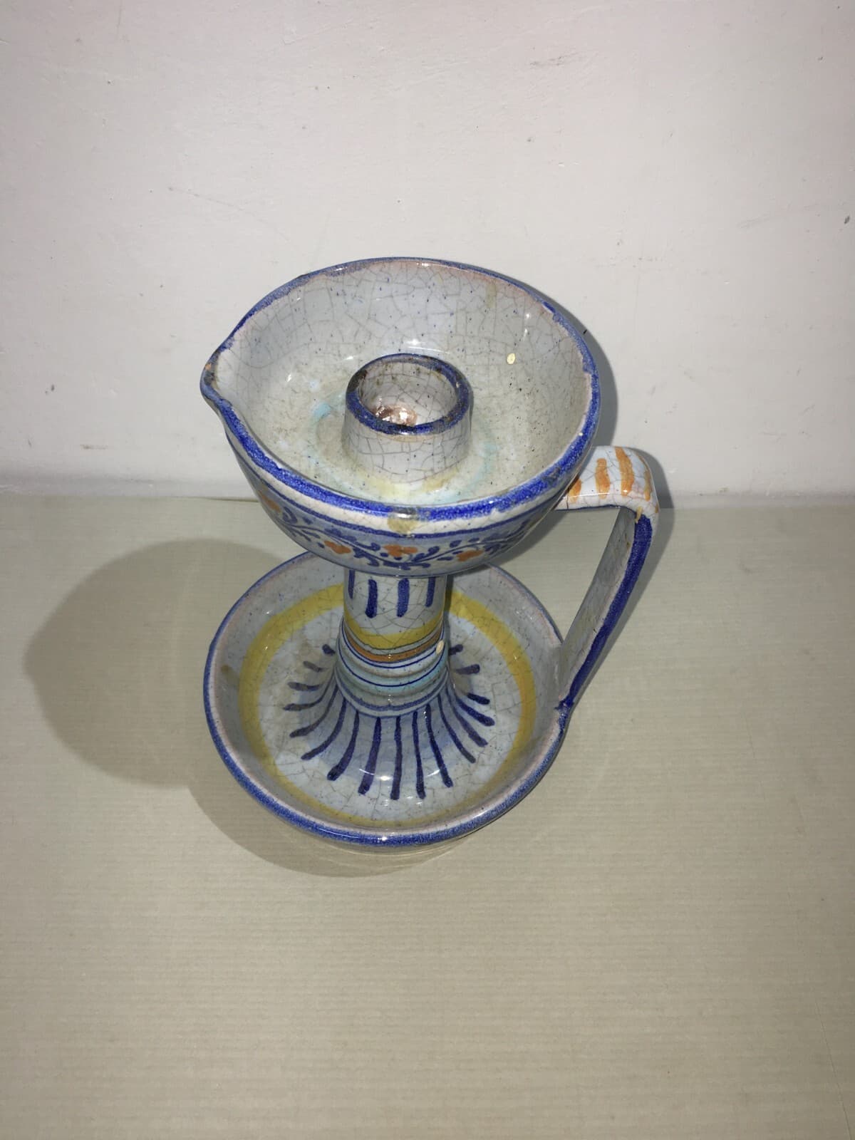Marche, Urbino: Soprammobile Decorativo, Bugia Porta Candela In Ceramica Policroma