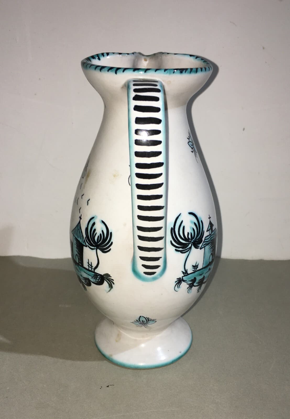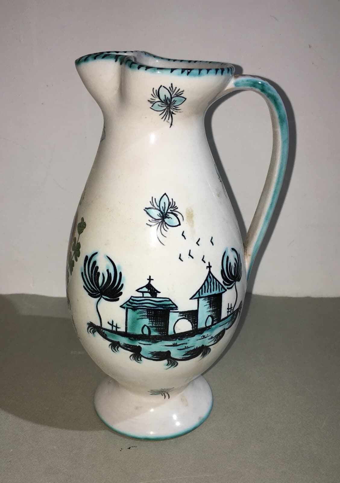 Brocca Decorativa In Ceramica A Decoro Floreale, Manifattura I.A.M.A. Albisola