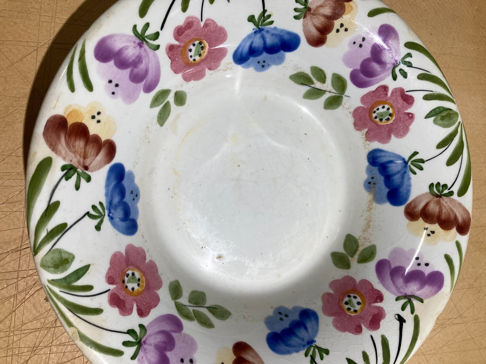 Piatto Antico In Porcellana Con Decori Floreali Policromi