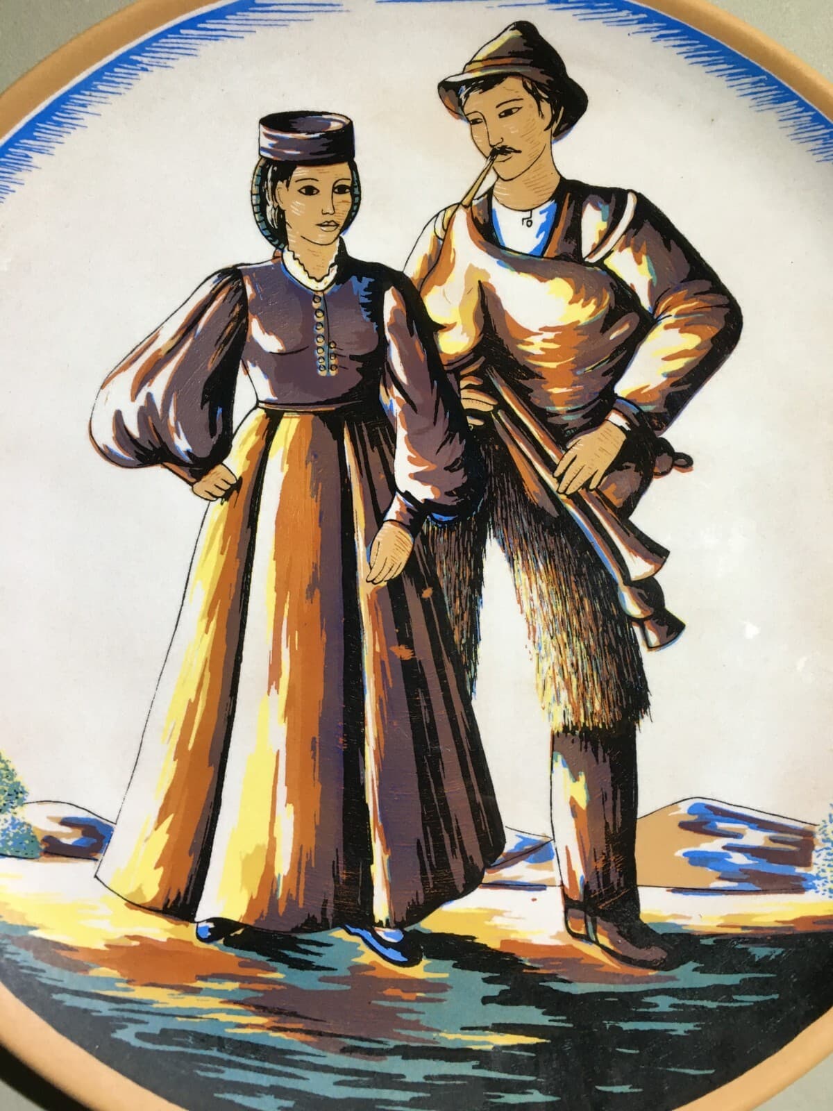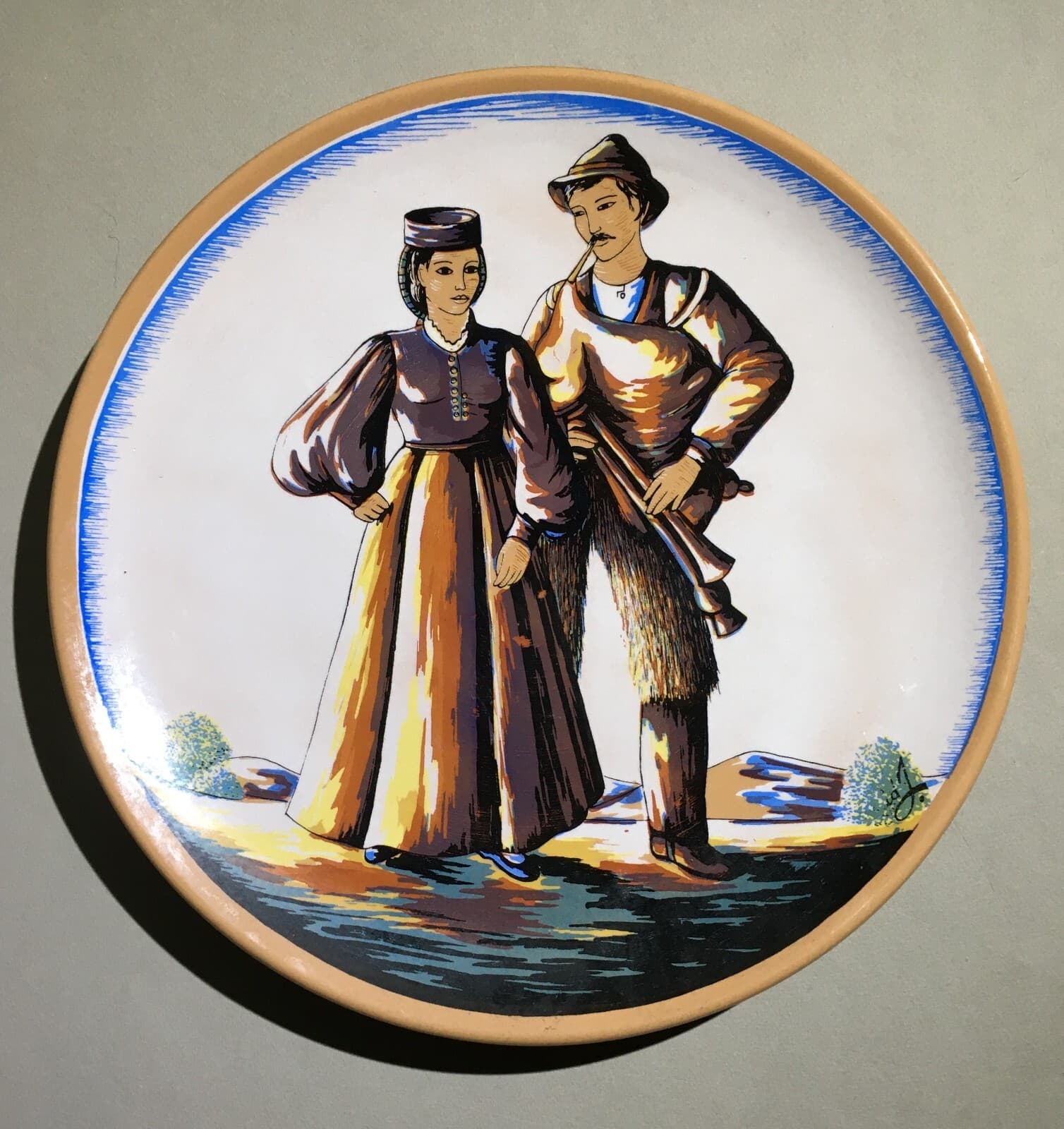 Costumi Popolari Regionali, Folklore: Piatto Decorativo In Ceramica Con Cornamusa