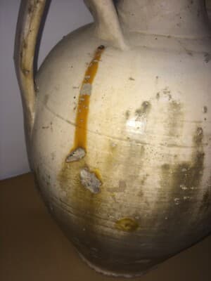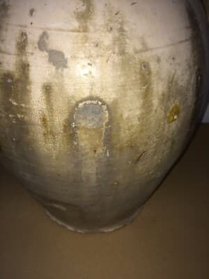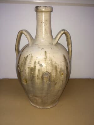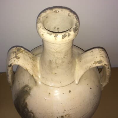 Ceramica Popolare Tradizionale: Anfora Smaltata Bianca Da Collezione Decorativa