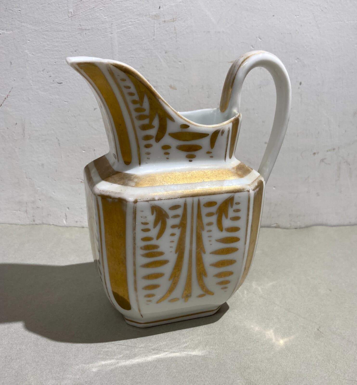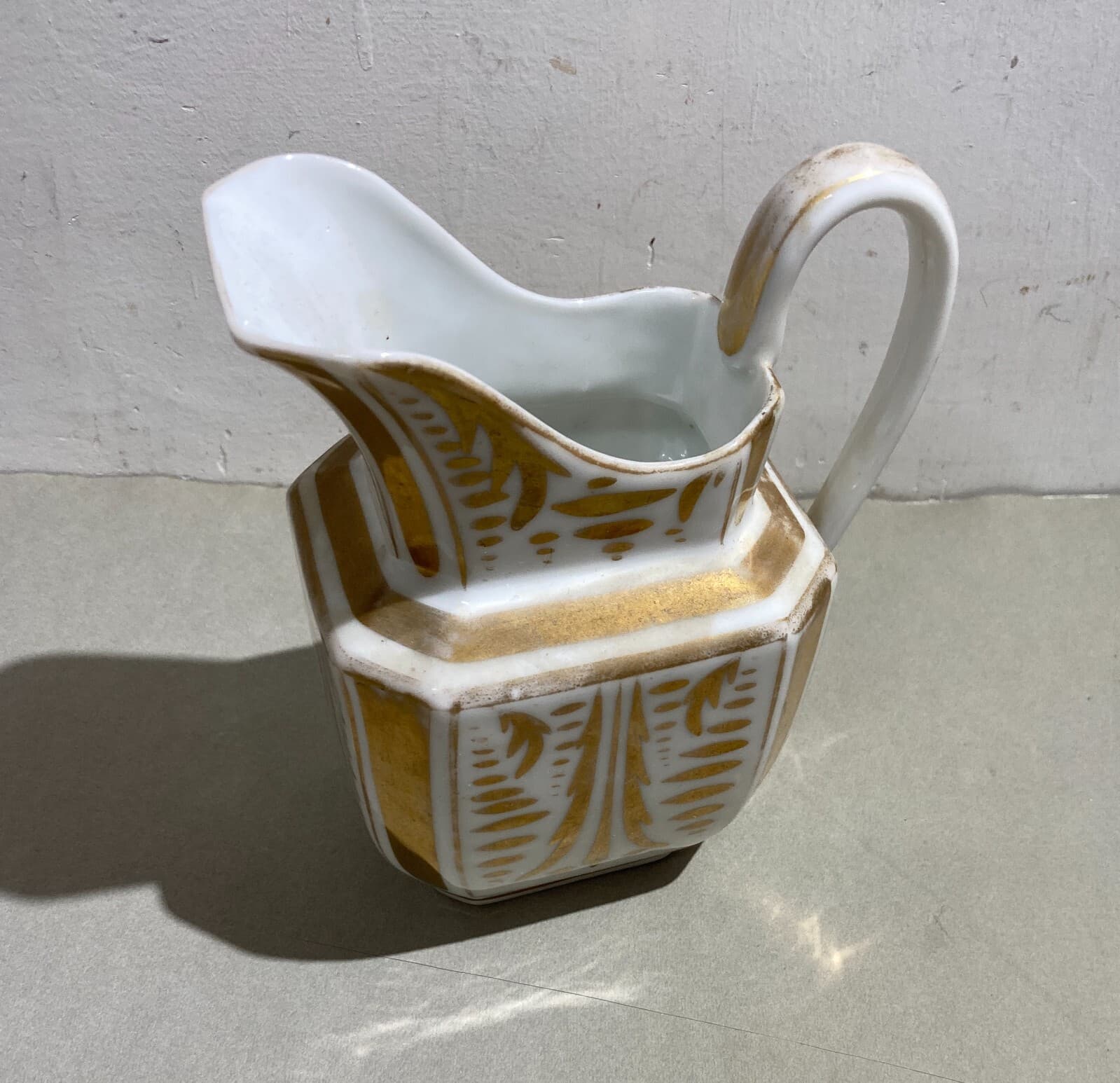 Decorativo Soprammobile In Porcellana Bianca E Dorata Teiera d'Epoca