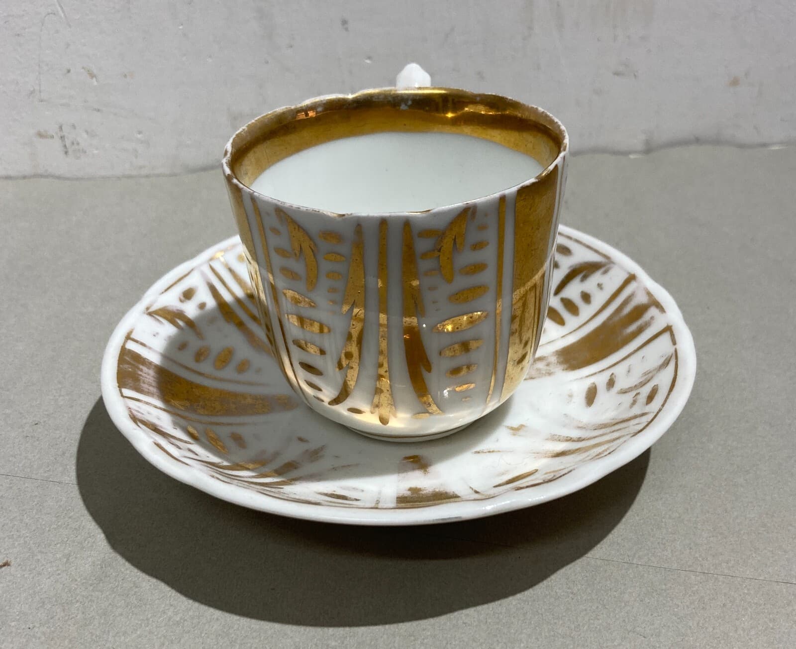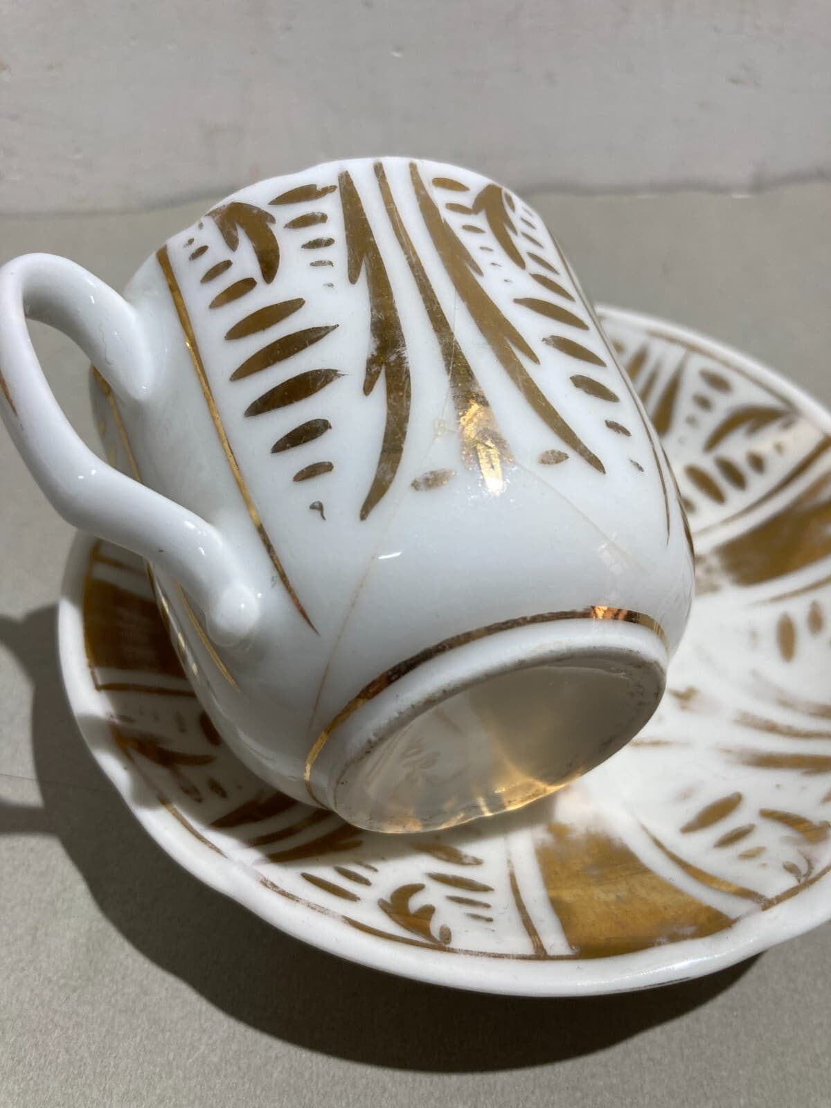 Soprammobile Decorativo In Porcellana Bianca E Dorata: Antica Tazza Con Piattino
